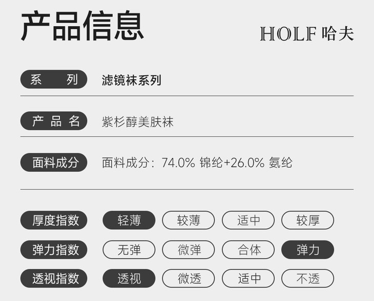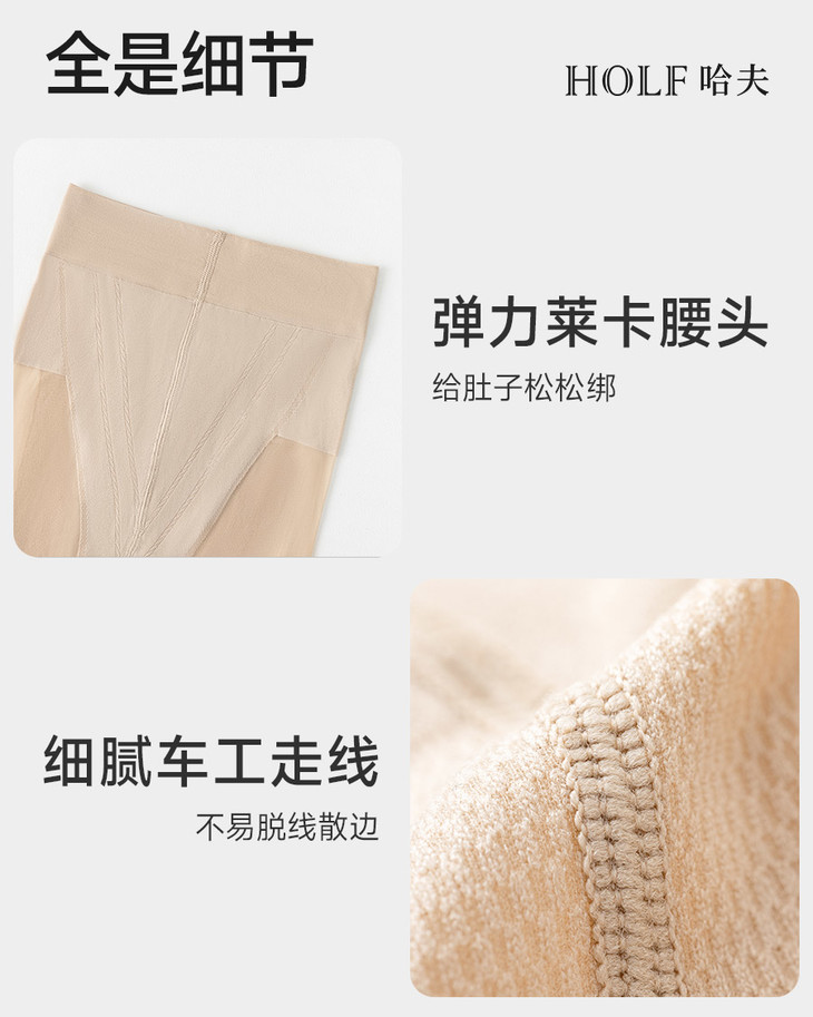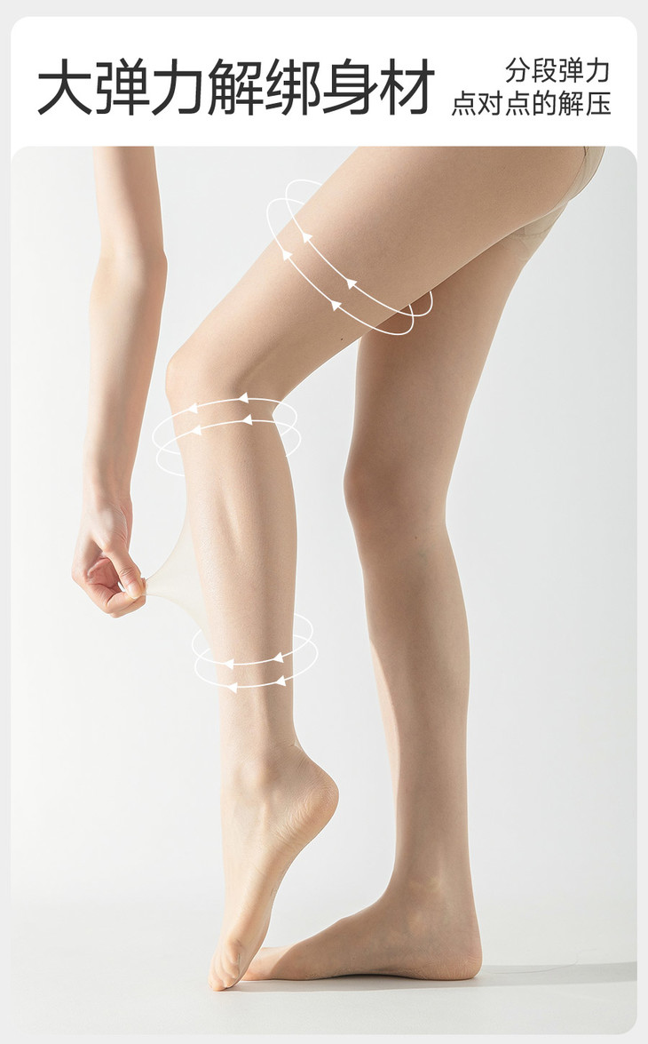 美肤袜采用"莫比龙"超细弹性纤维和lonati袜机编织技术,纹理细腻、光泽自然,穿上后仿佛第二层肌肤般贴合,展现出无瑕质感,更特别的是,还融入了珍贵的紫杉醇成分。紫杉醇,是一种从红豆杉树皮中提取的天然物质,不仅具有出色的妔菌性能,还能帮助净化肌肤,让双腿在享受丝滑触感的同时,得到健康的呵护。而且美肤袜还采用400针细密编织工艺和"自锁边"技术,即使不小心被尖锐物品刮到,也能迅速锁边,不脱线,告别"一次性丝袜"烦恼!