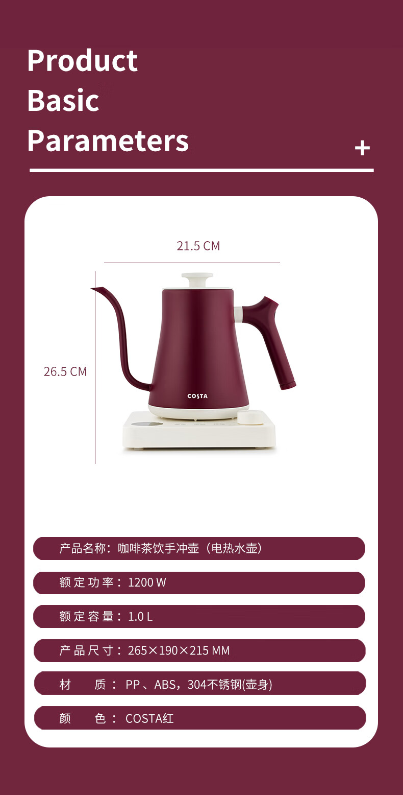 咖世家咖啡茶饮手冲壶CT-03F01(电热水壶)【LXKGZQ4.0】