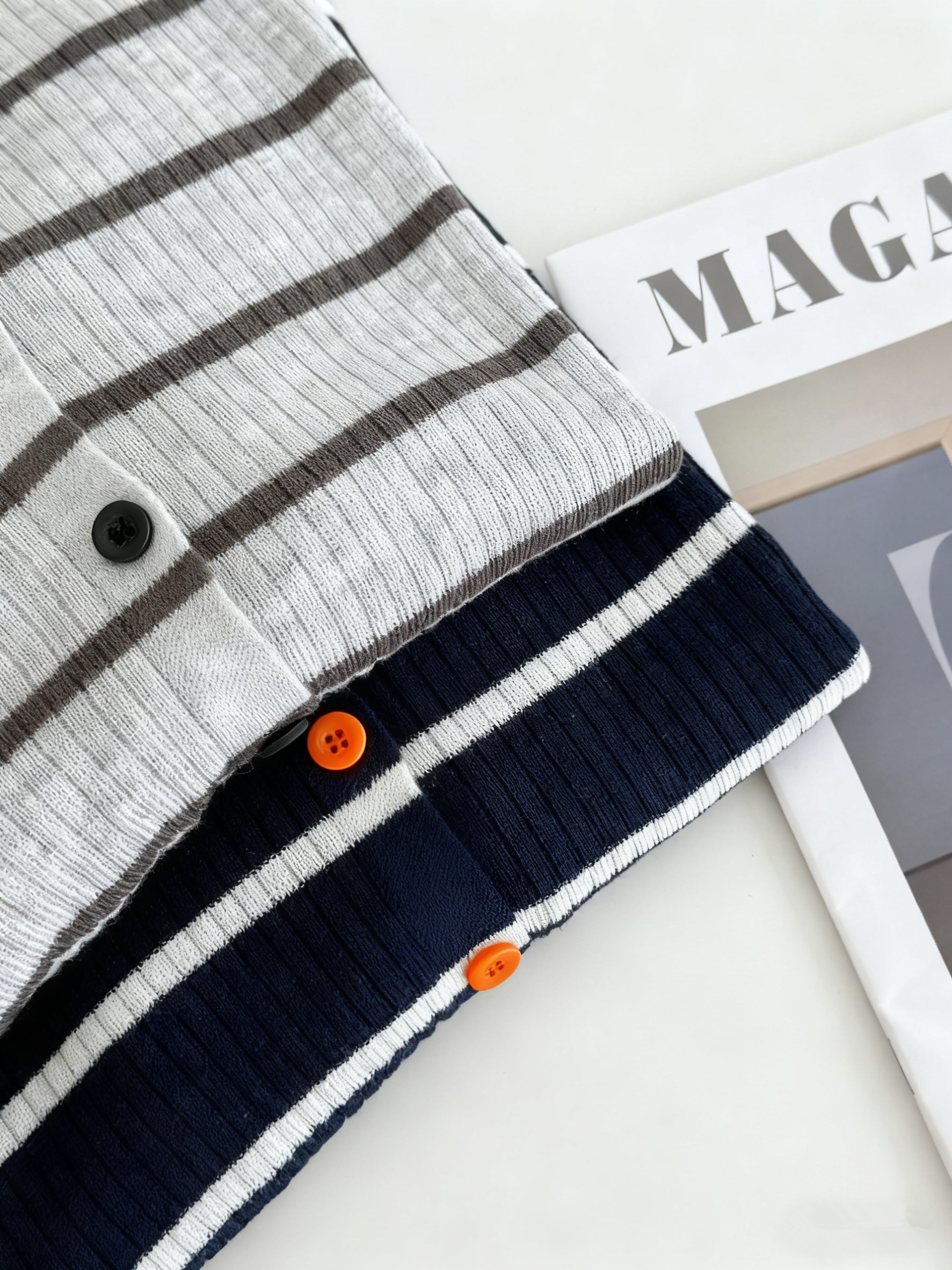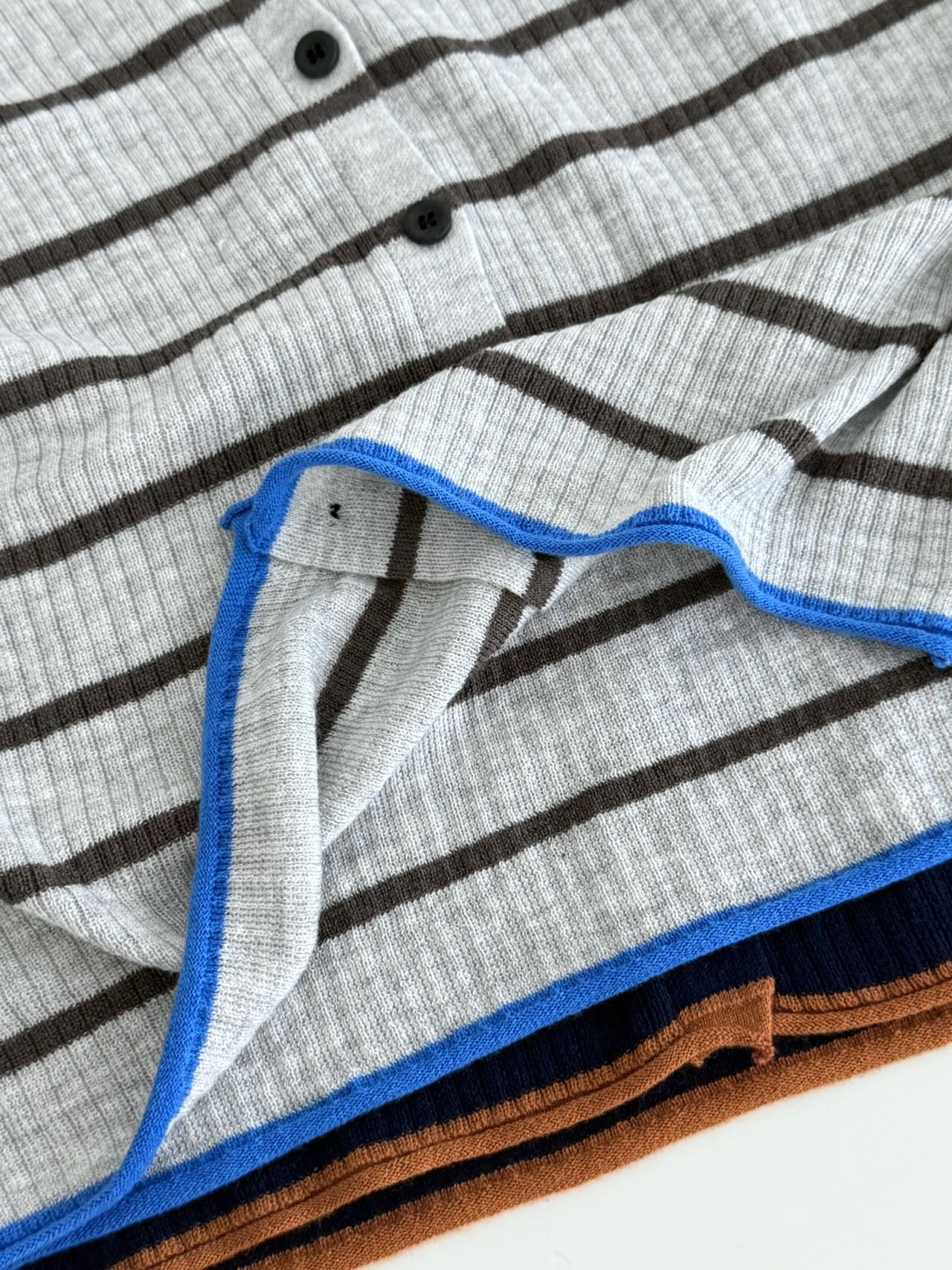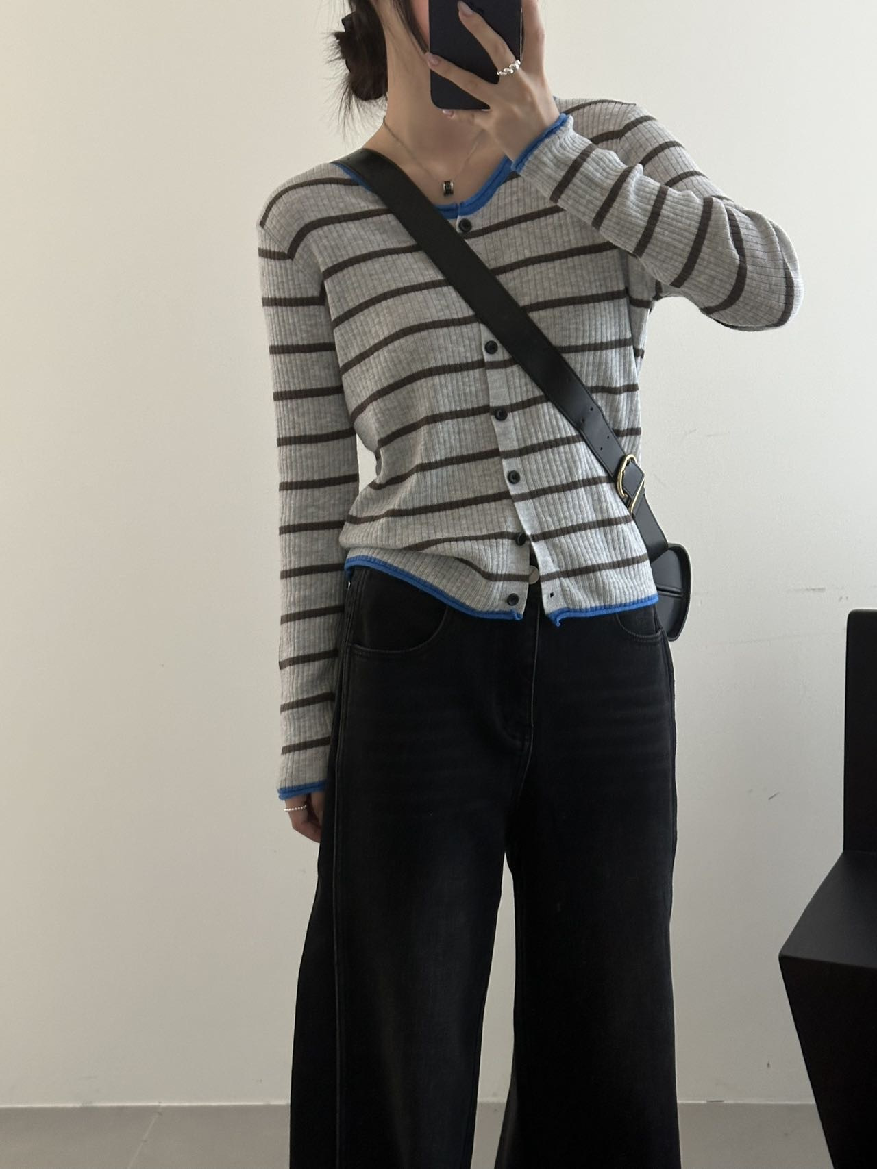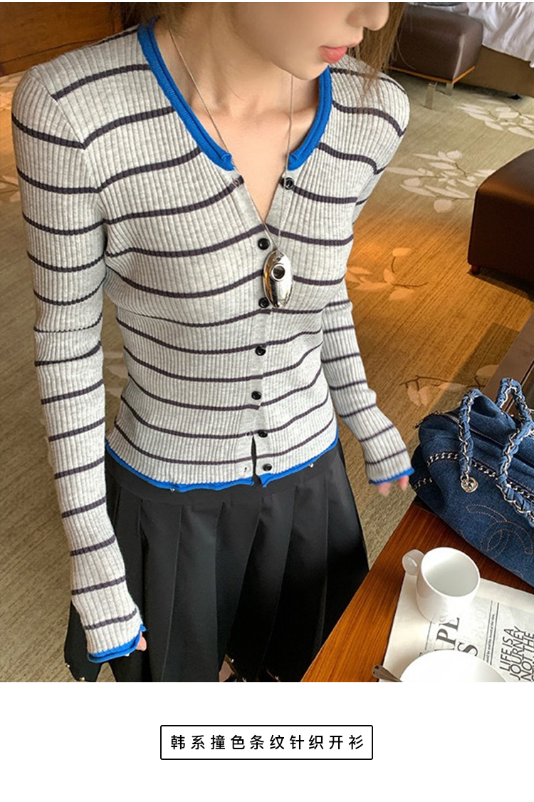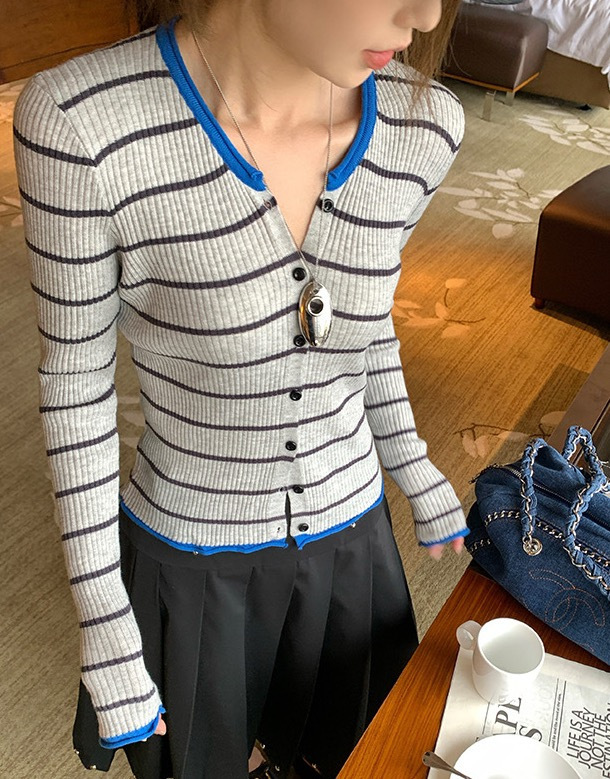 据说这款韩系撞色条纹针织开衫,在韩国专柜一上架就卖断货了⚠️这段时间一直在补单。