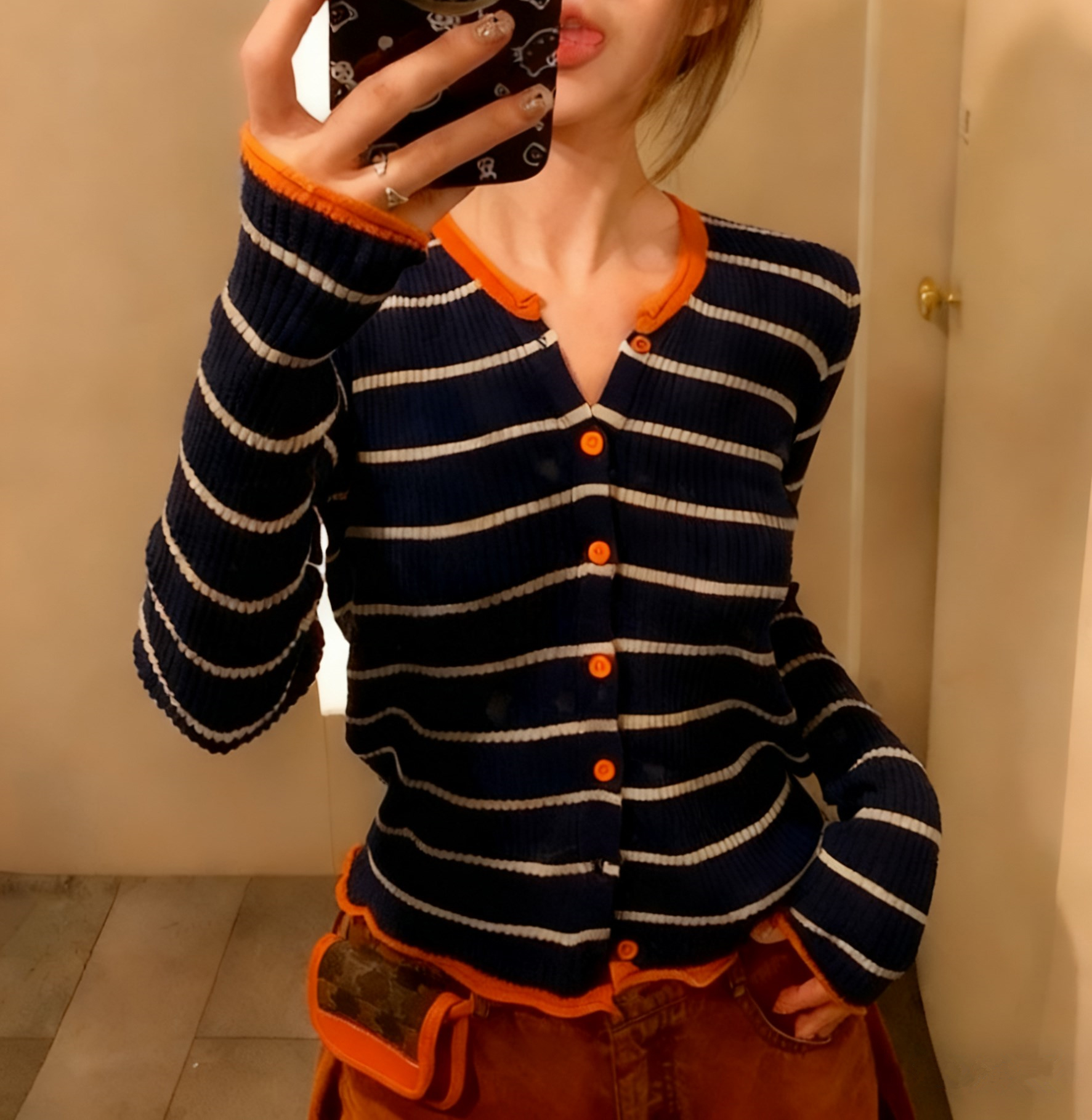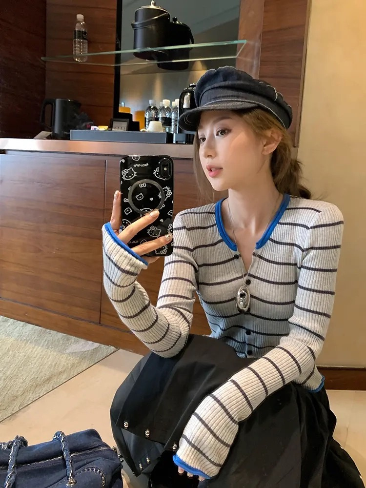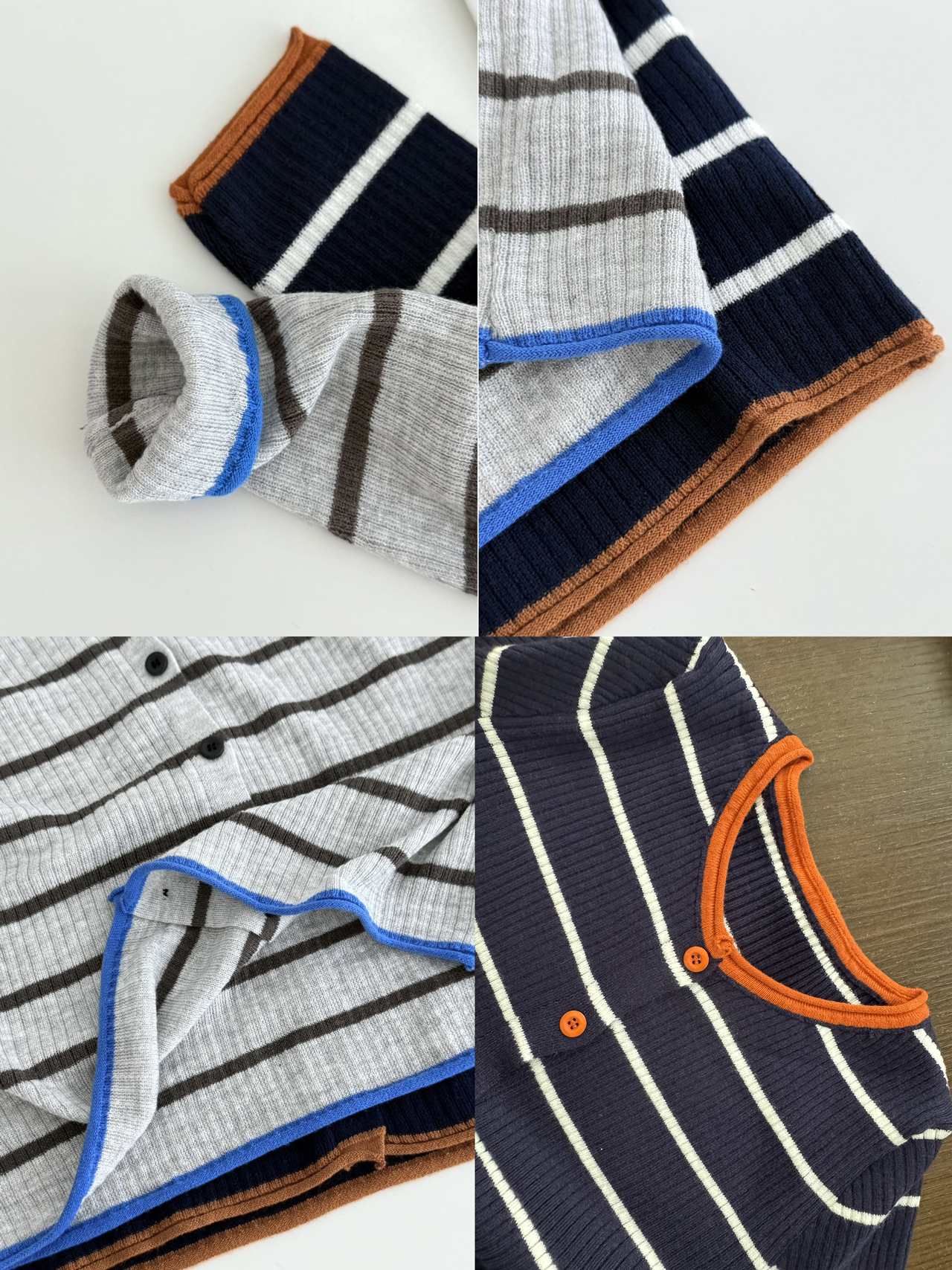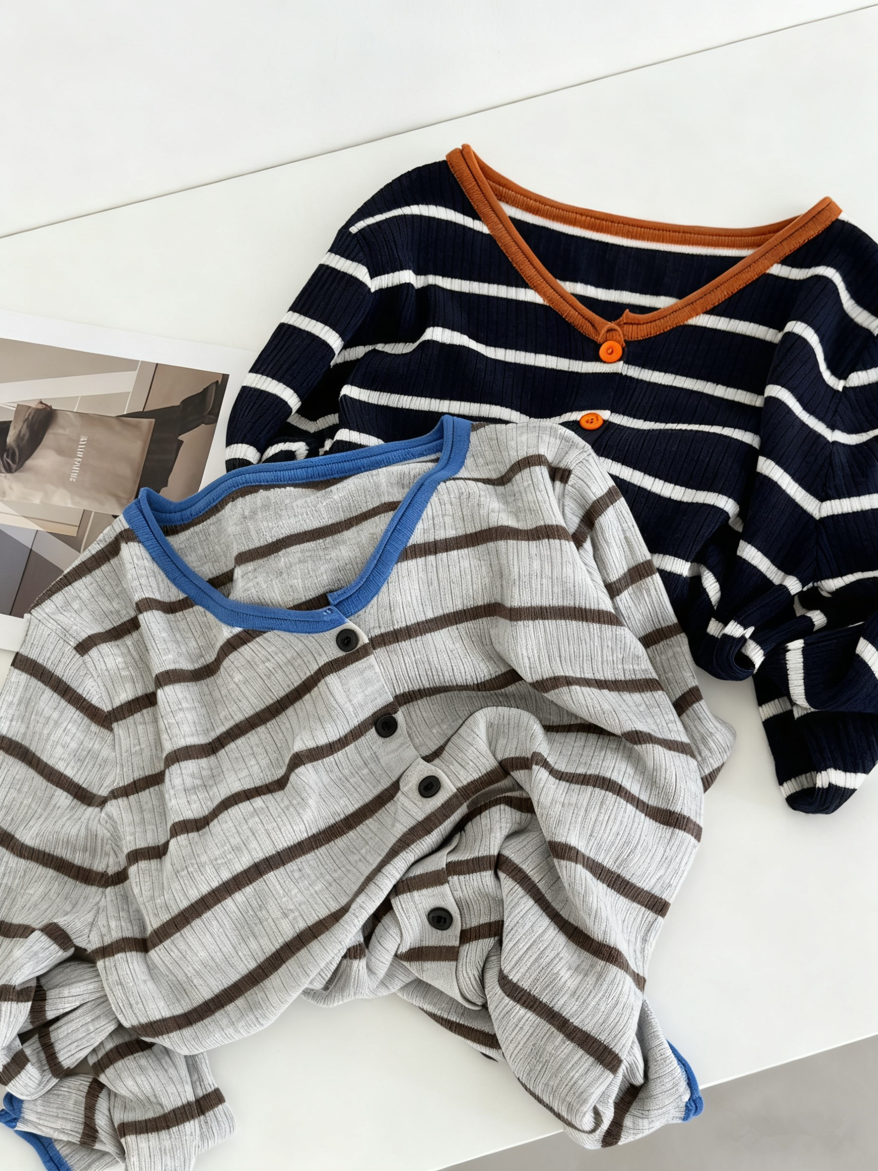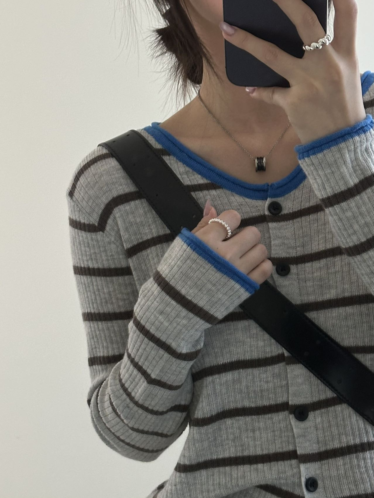 据说这款韩系撞色条纹针织开衫,在韩国专柜一上架就卖断货了⚠️这段时间一直在补单。