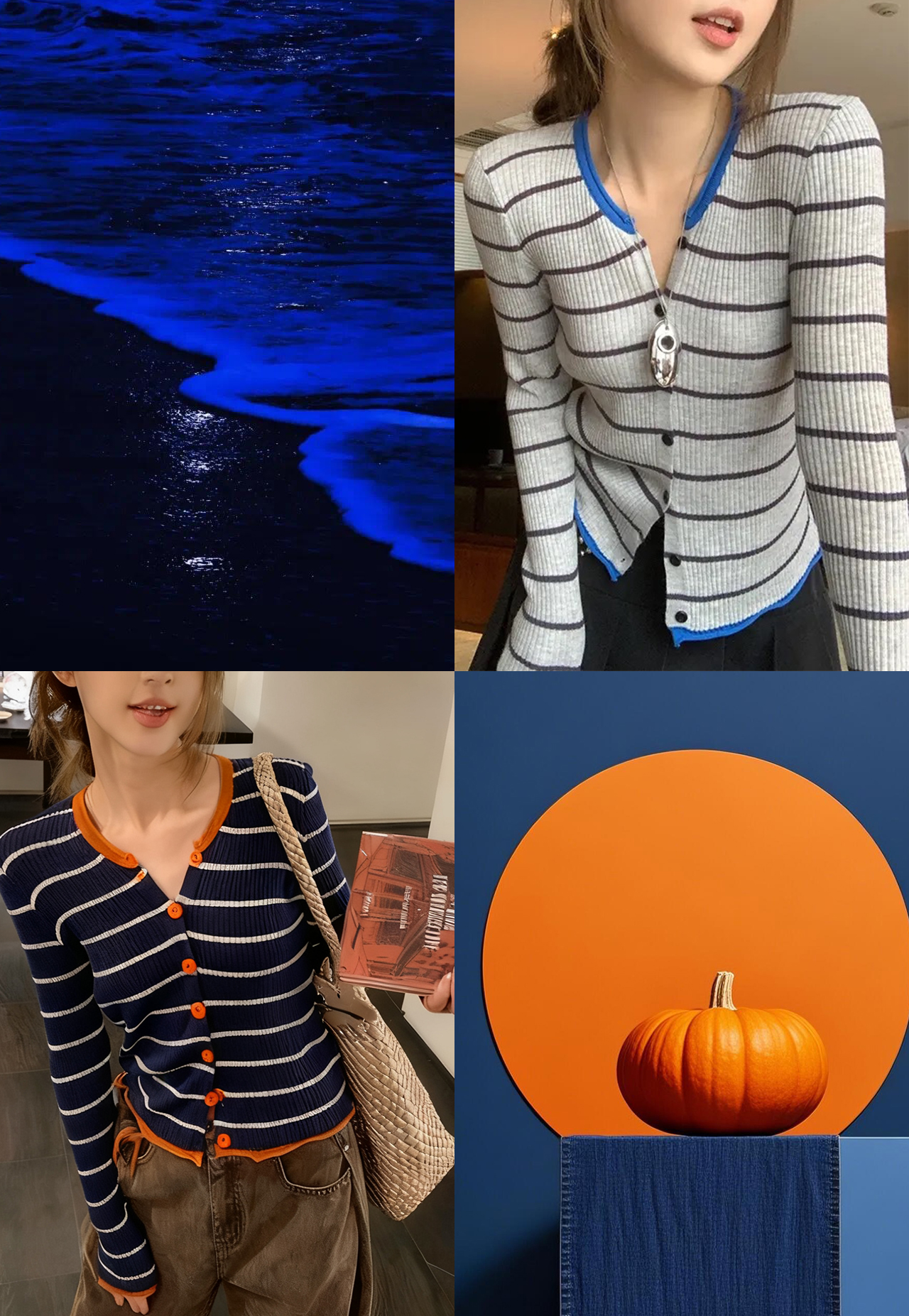 🔶 普鲁士深蓝 | 撞色南瓜橙,活力亮眼,青春洋溢的感觉、很有感染力。