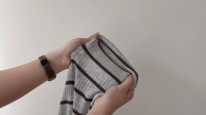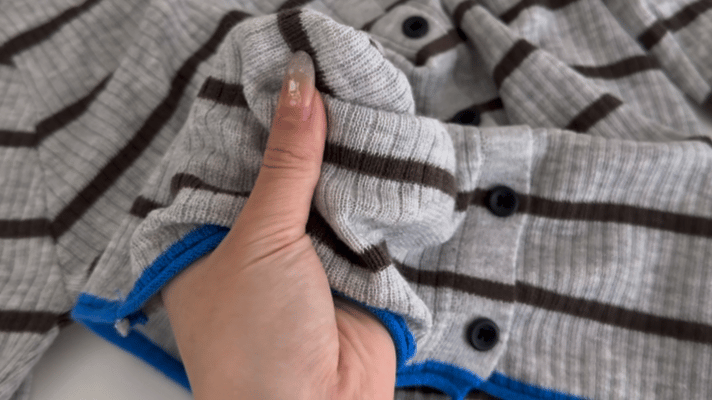 虽然样式是横条纹,但你仔细看,它的针织纹理是竖的。