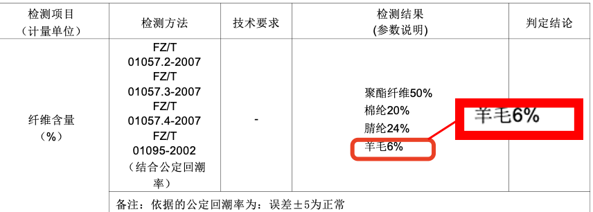 羊毛成本高,低于百元的针织衫,一般就别想了。但它居然含有6%羊毛。