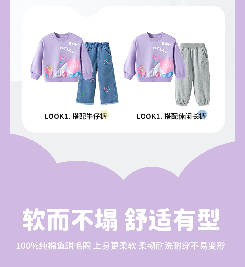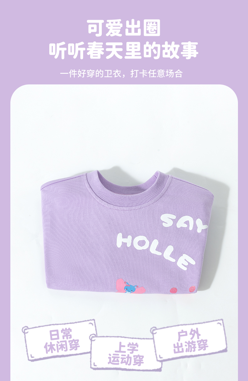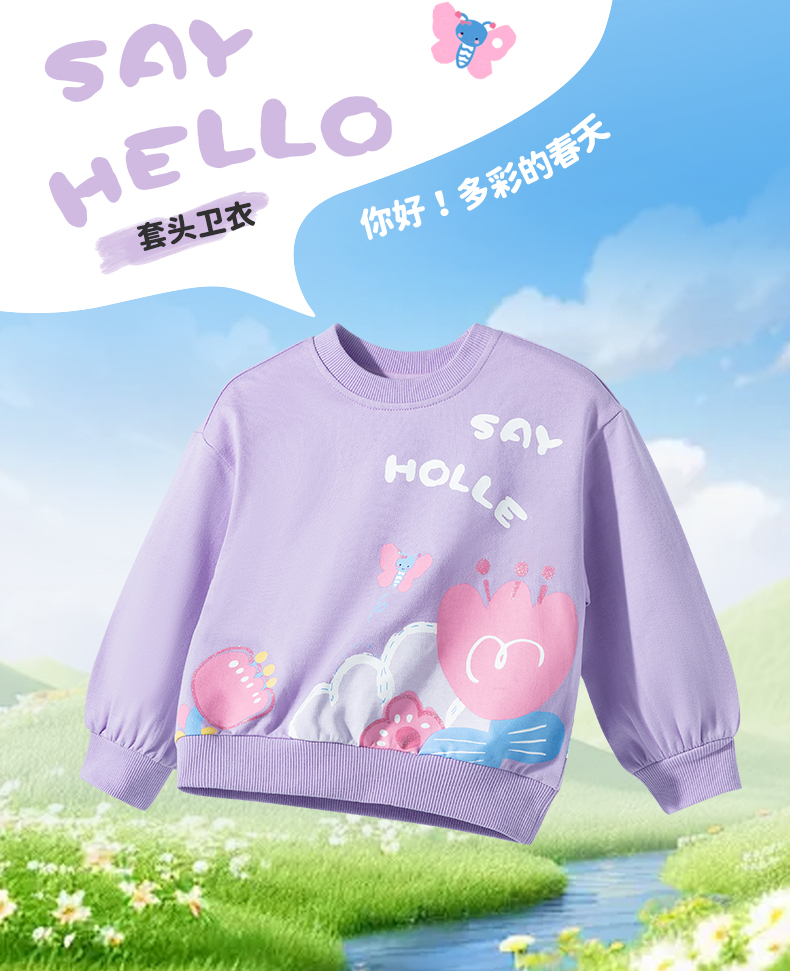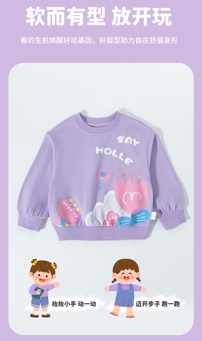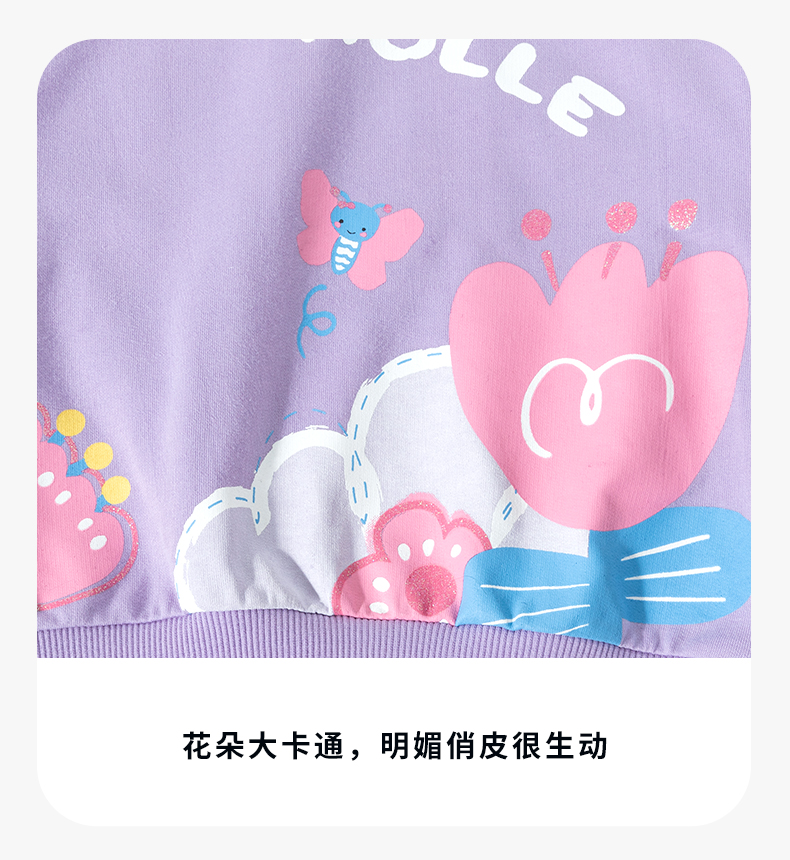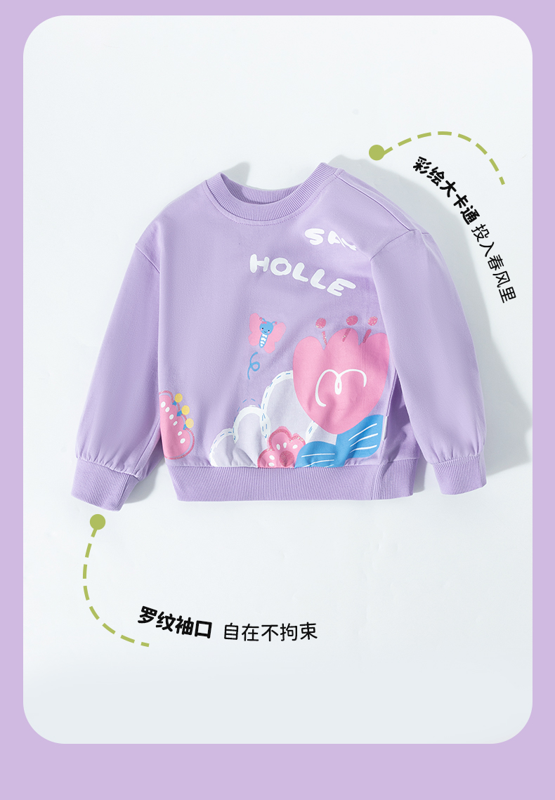 ZB1ES010贝贝怡童装女童卫衣纯棉2024新款春秋上衣套头可爱百搭打底衫