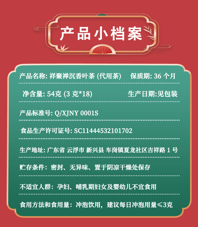 祥聚禅丨沉香叶茶 代用茶 家庭小盒装 尝鲜款 54g