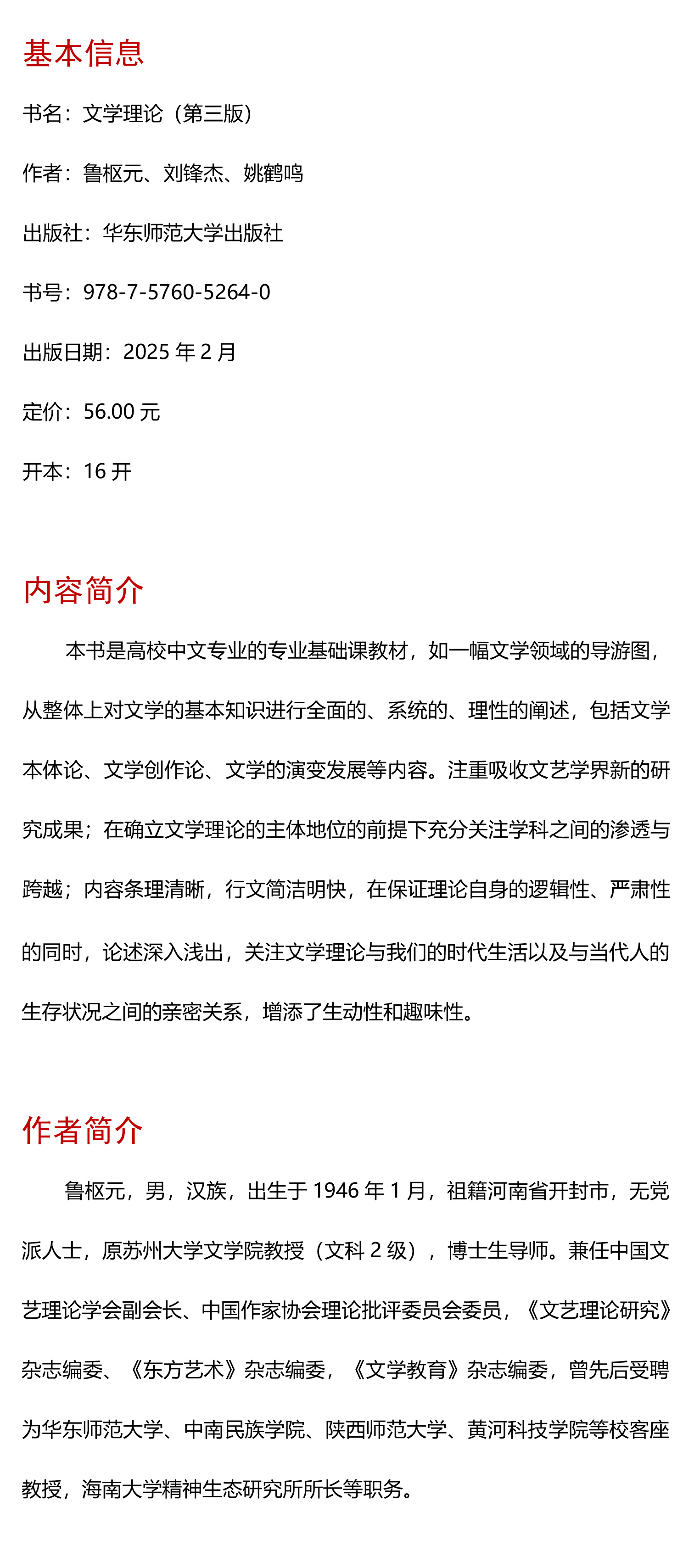 文学理论 第三版 鲁枢元 刘锋杰 姚鹤鸣 高校文科精品教材