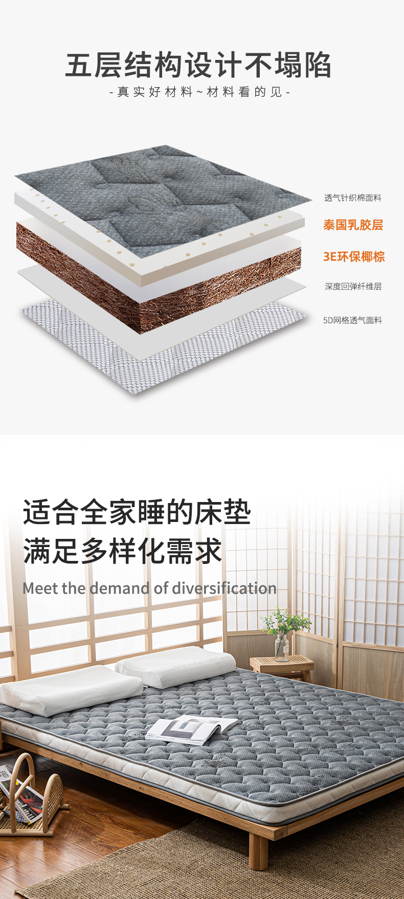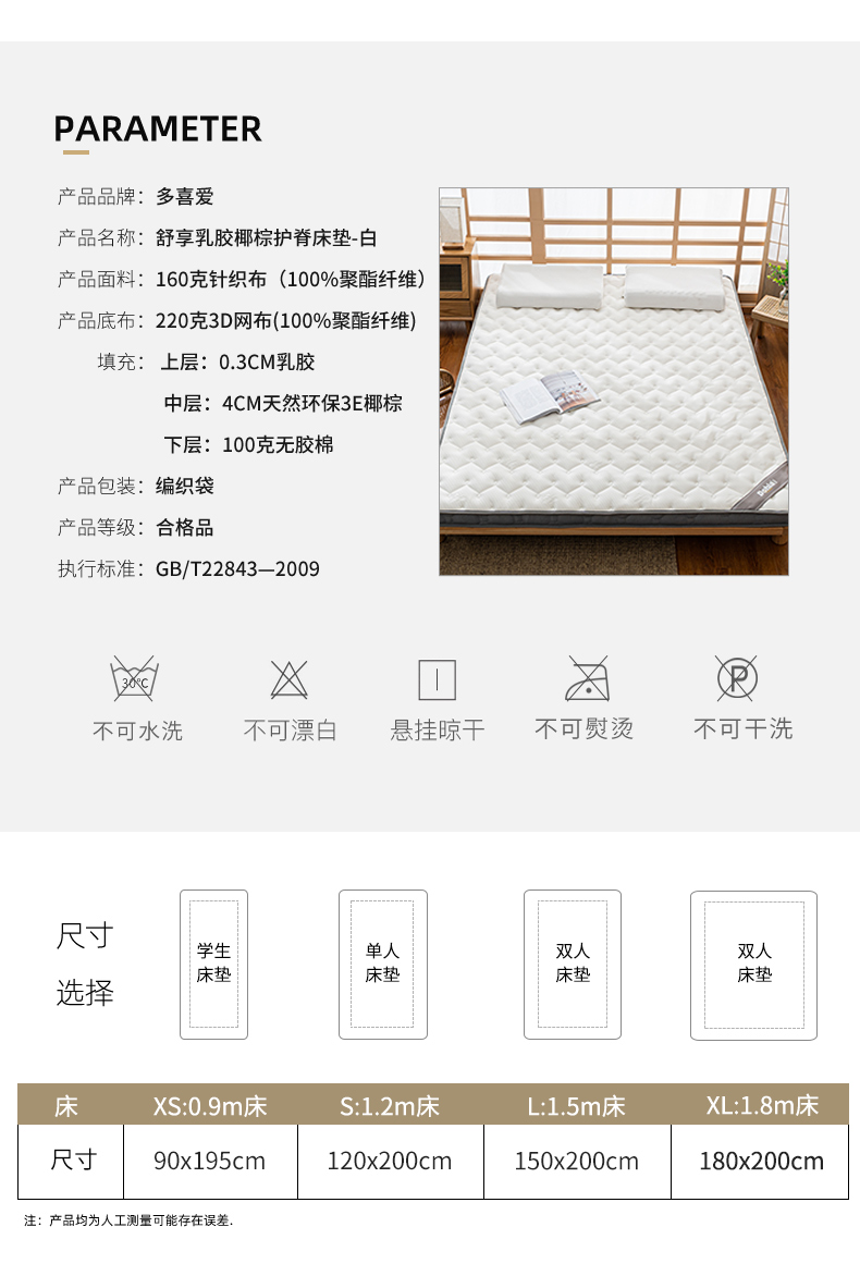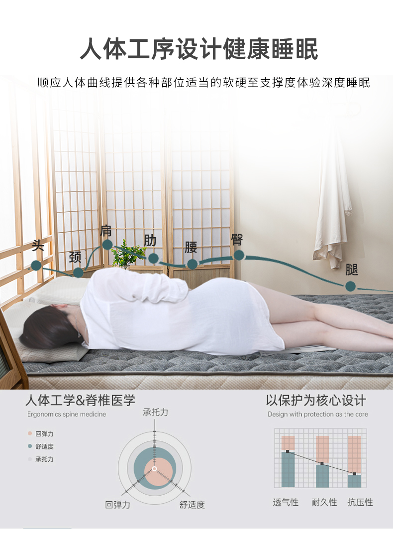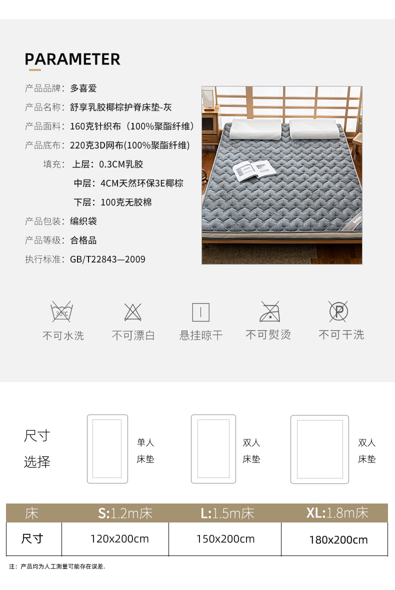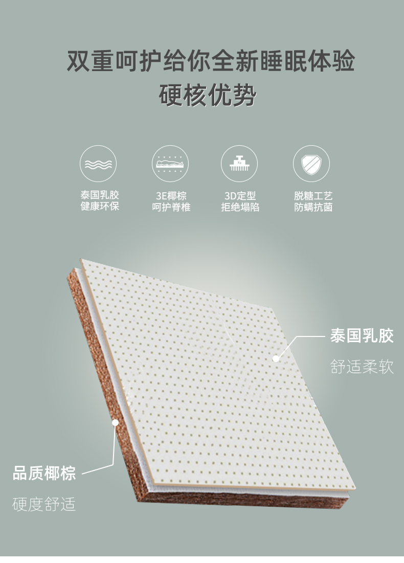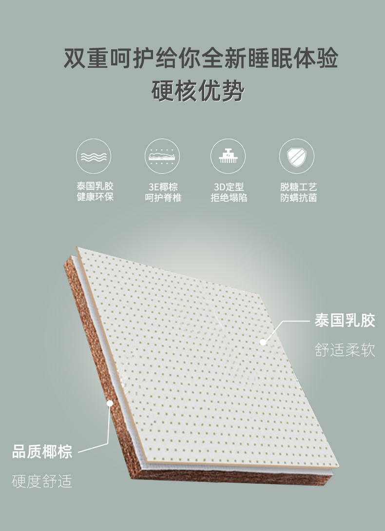 多喜爱 舒享乳胶椰棕护脊床垫灰/白【泰国乳胶健康环保】【3E棷棕呵护脊椎】【双重体验 安享睡眠】