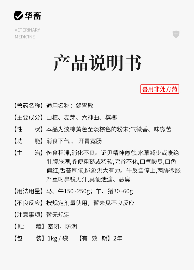 华畜兽药 健胃散2斤装 健胃消食 促生长 中药促消化 理气消胀 猪牛羊用