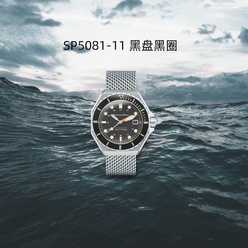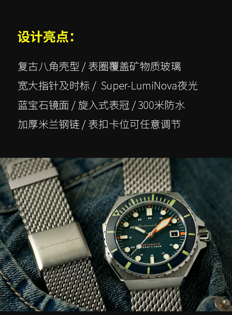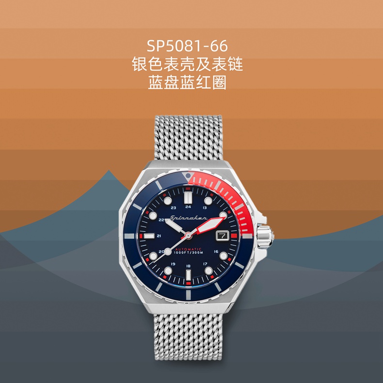 英国SPINNAKER三角帆自动机械表DUMAS男士复古钢链夜光潜水SP5081