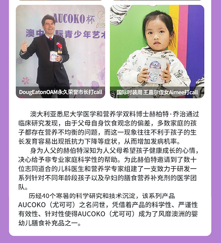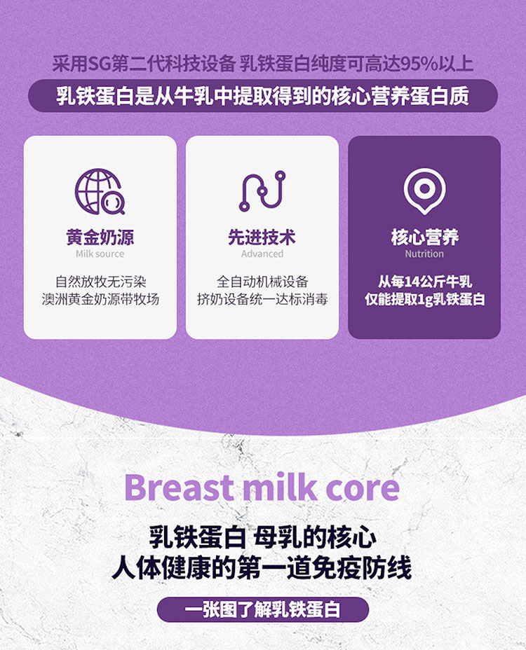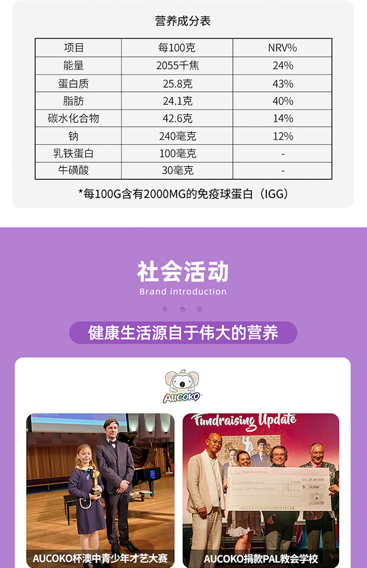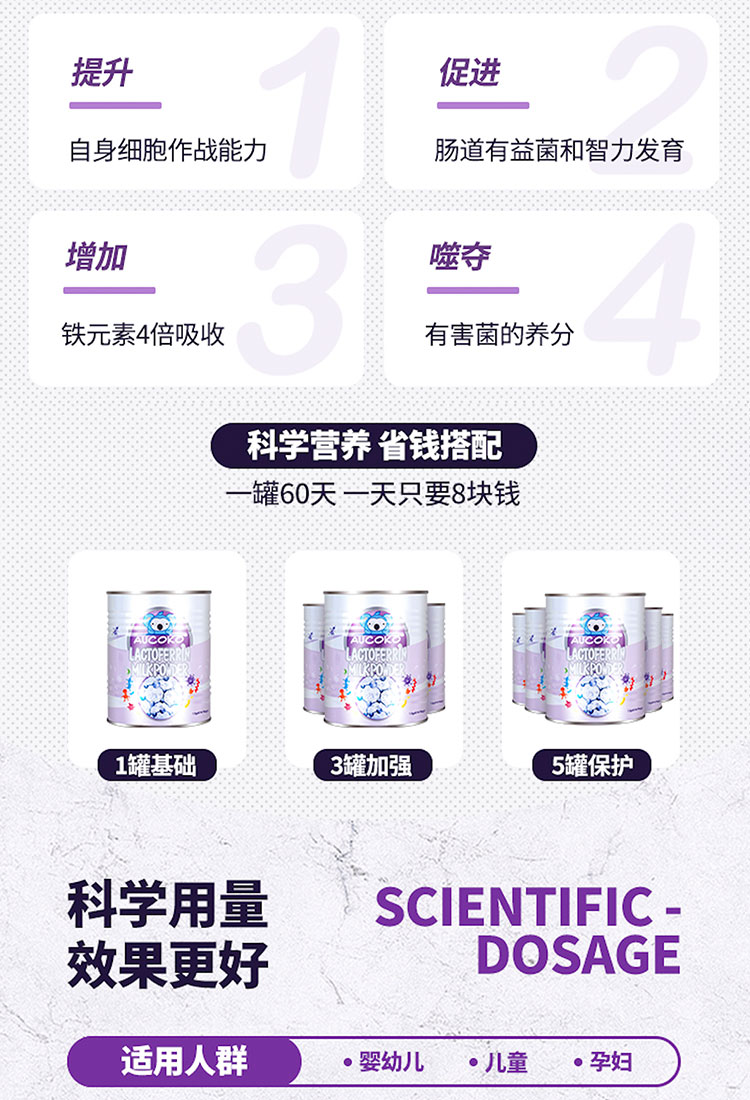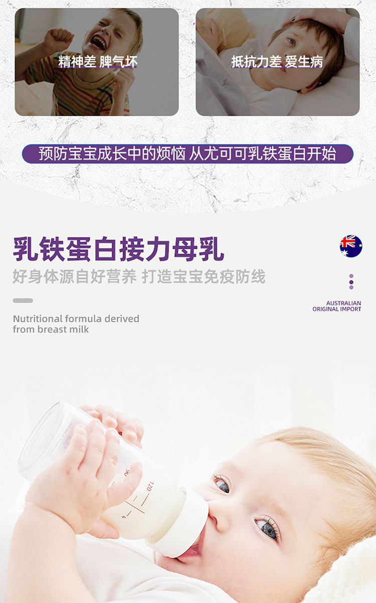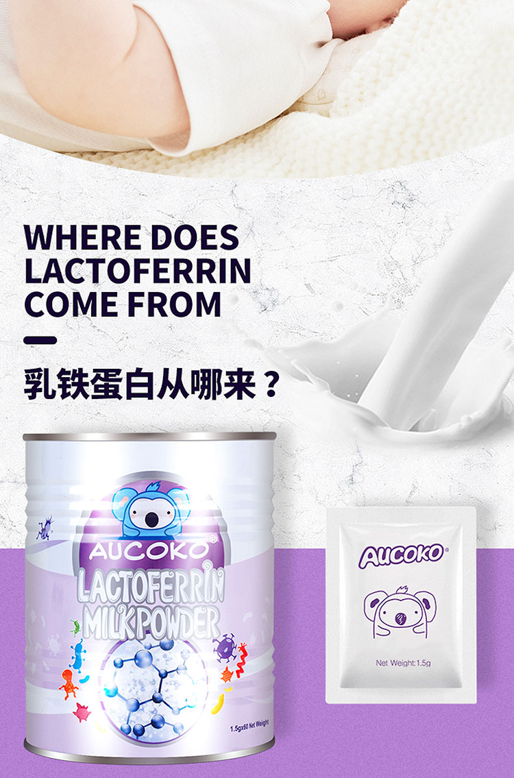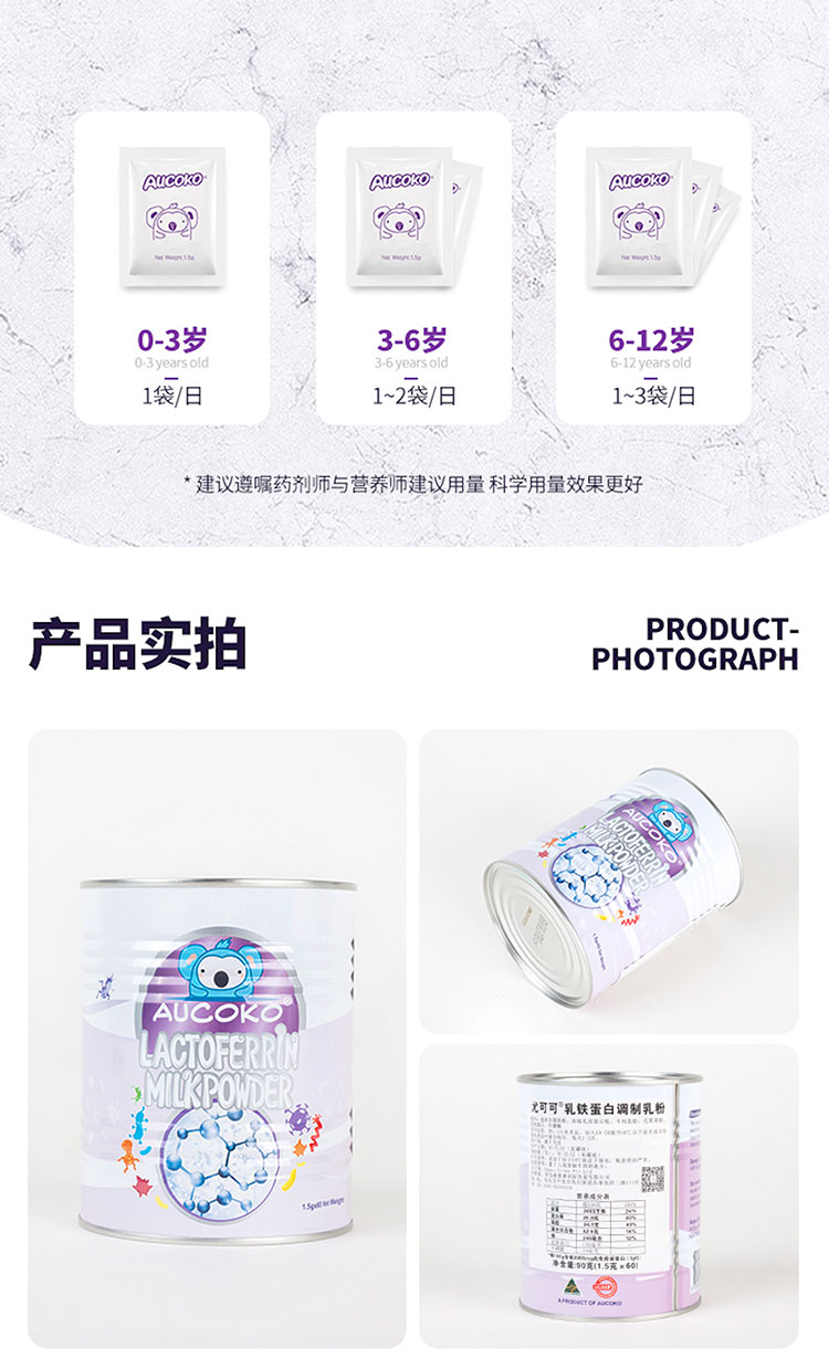 【保税仓】 澳洲Aucoko尤可可 乳铁蛋白调制乳粉含牛磺酸紫版90g/罐(1.5g*60袋)
