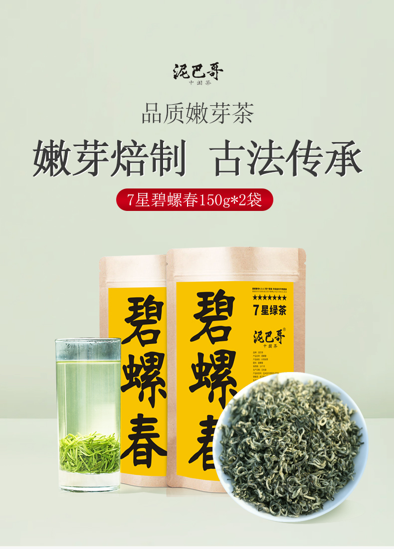 【2026新茶上市】泥巴哥7星碧螺春明前嫩芽绿茶叶150g*2袋