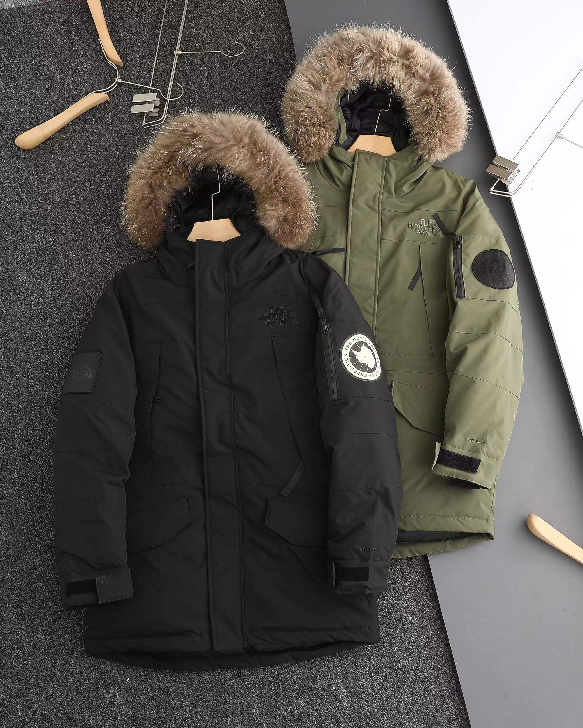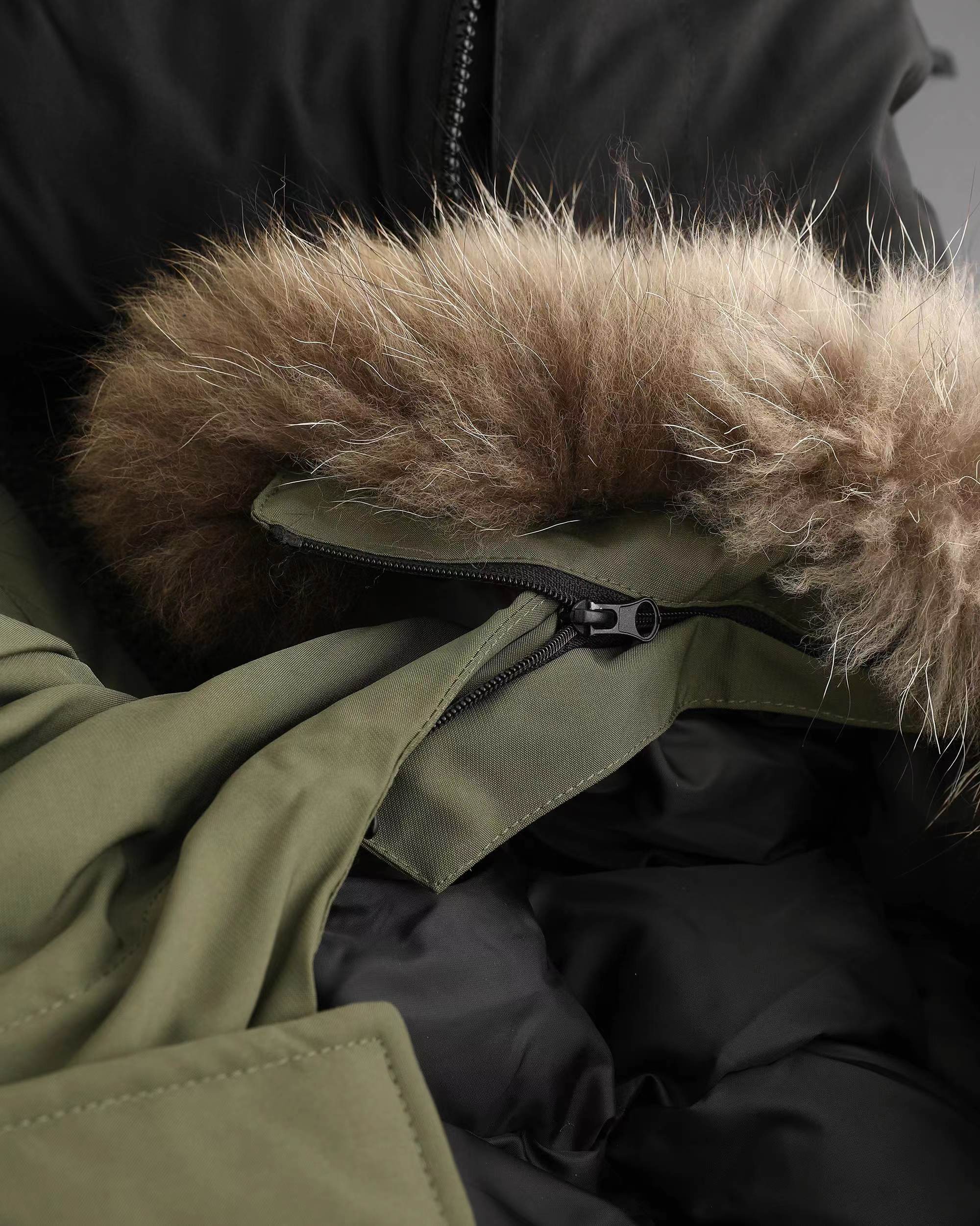 纯色毛领连帽中长款滑雪服极地羽绒服-面料采用GORE-TEX三层防水防风面料 ,鹅绒填充 真材实料 绝绝子,户外面料韧性高、耐磨损、抗撕裂都是醉ding级的,全身压胶缝制工艺 ,超高的冲绒量 ,毛领中长款派克服版型 ,男女通穿,毛领可拆卸,帽前两侧和帽后都有调节抽绳,可根据使用环境自由选择造型,右臂品牌徽标标识图腾,左臂极地远征袖章,配备的口袋全部采用YKK拉链,小物收纳方便实用,整件衣服炒鸡厚实,我称之为,行走的被窝!