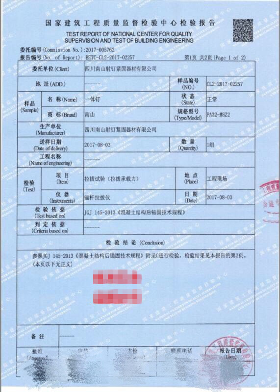 射钉是选用优质钢材,经过一系列的加工制成。它具有很高的强度和良好的韧性,其机械能为:1、硬度;2、抗拉强度;3抗剪强度;4、弯曲强度;