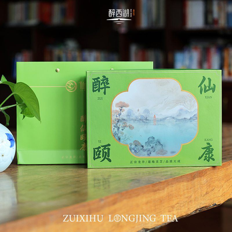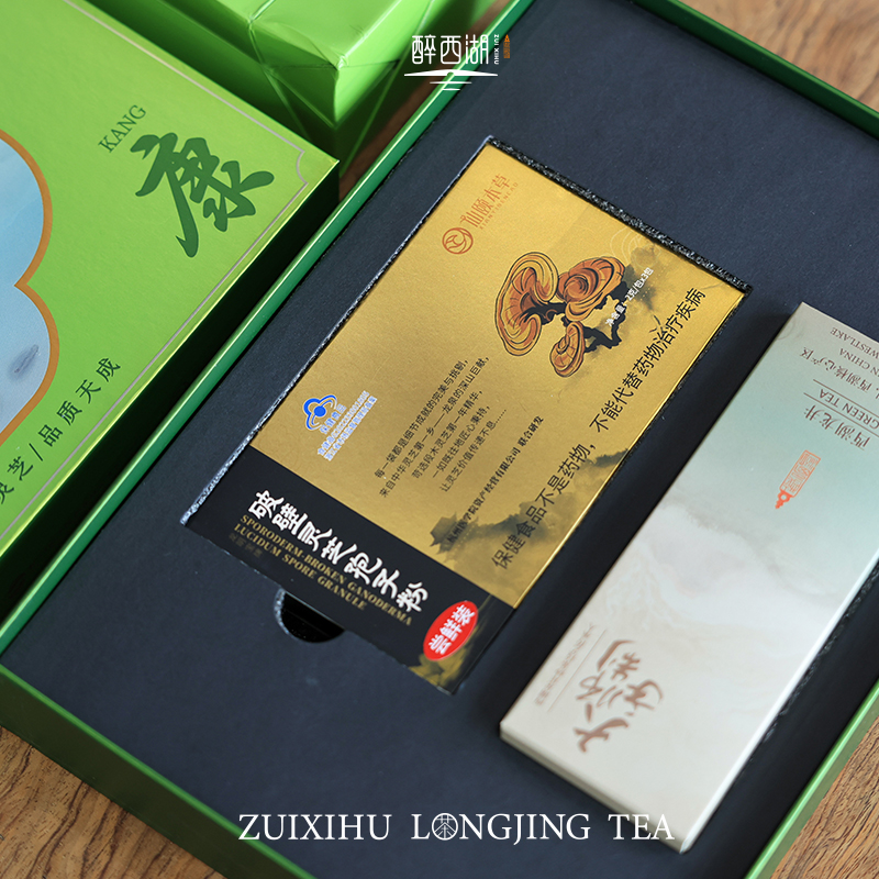 【杭州西湖】醉仙颐康破壁灵芝孢子粉龙井茶联名组合礼盒伴手礼商务礼