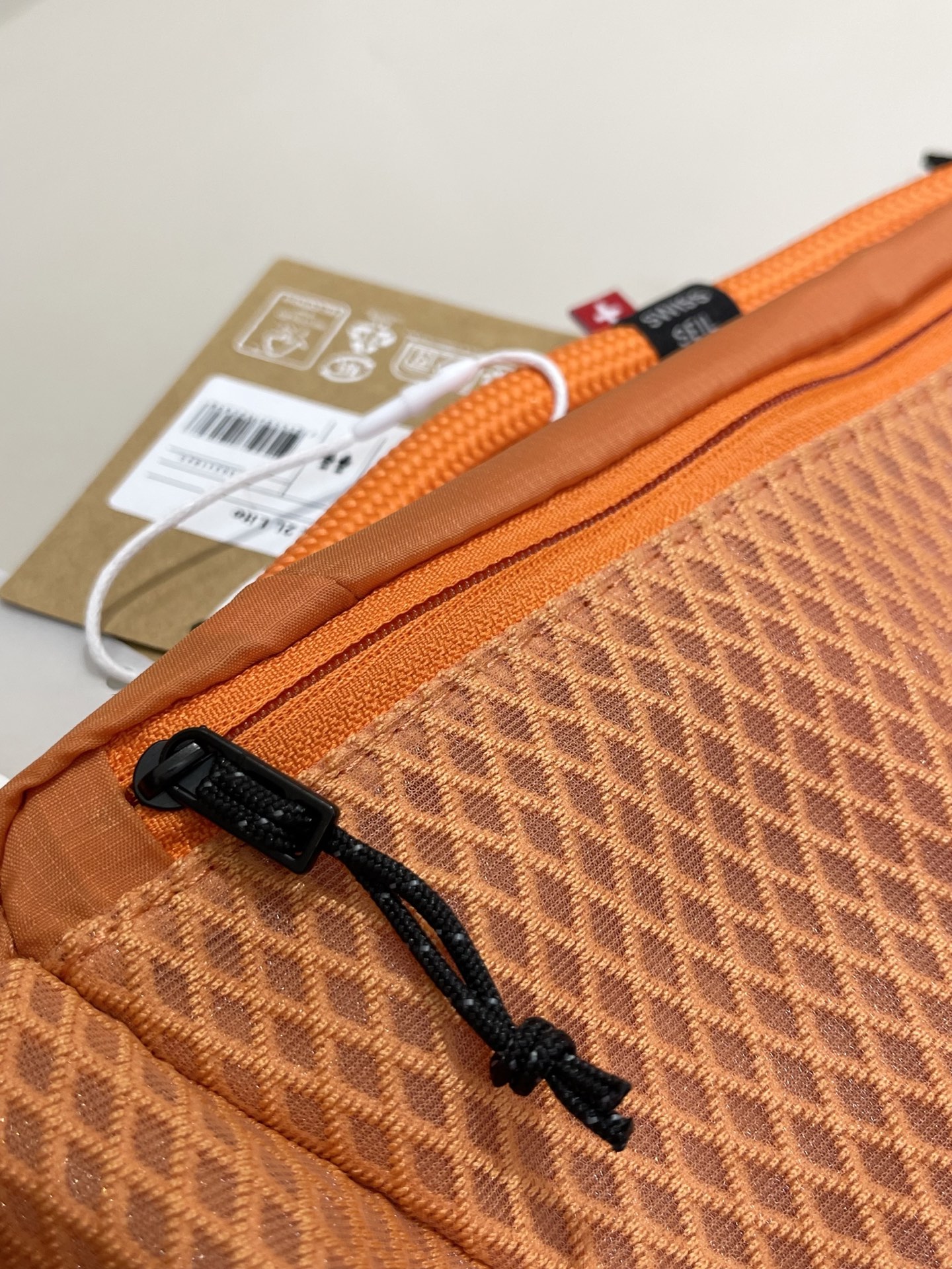 优选坚韧的尼龙材质,结实耐用 不易撕裂,非常抗造!搭配聚酯纤维网眼内衬 透气舒适,亲测自重110g 极致轻便处理,上身轻若无物 久背也毫无压力!包上的反光logo装饰 增加辨识度和夜跑等运动的安全性~