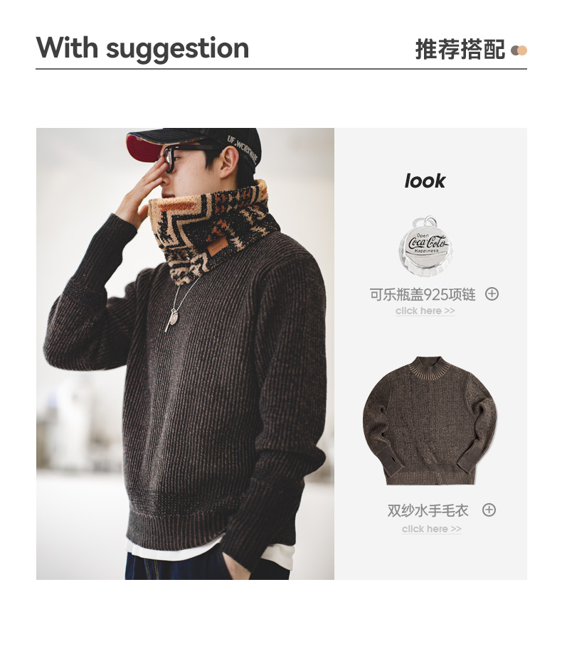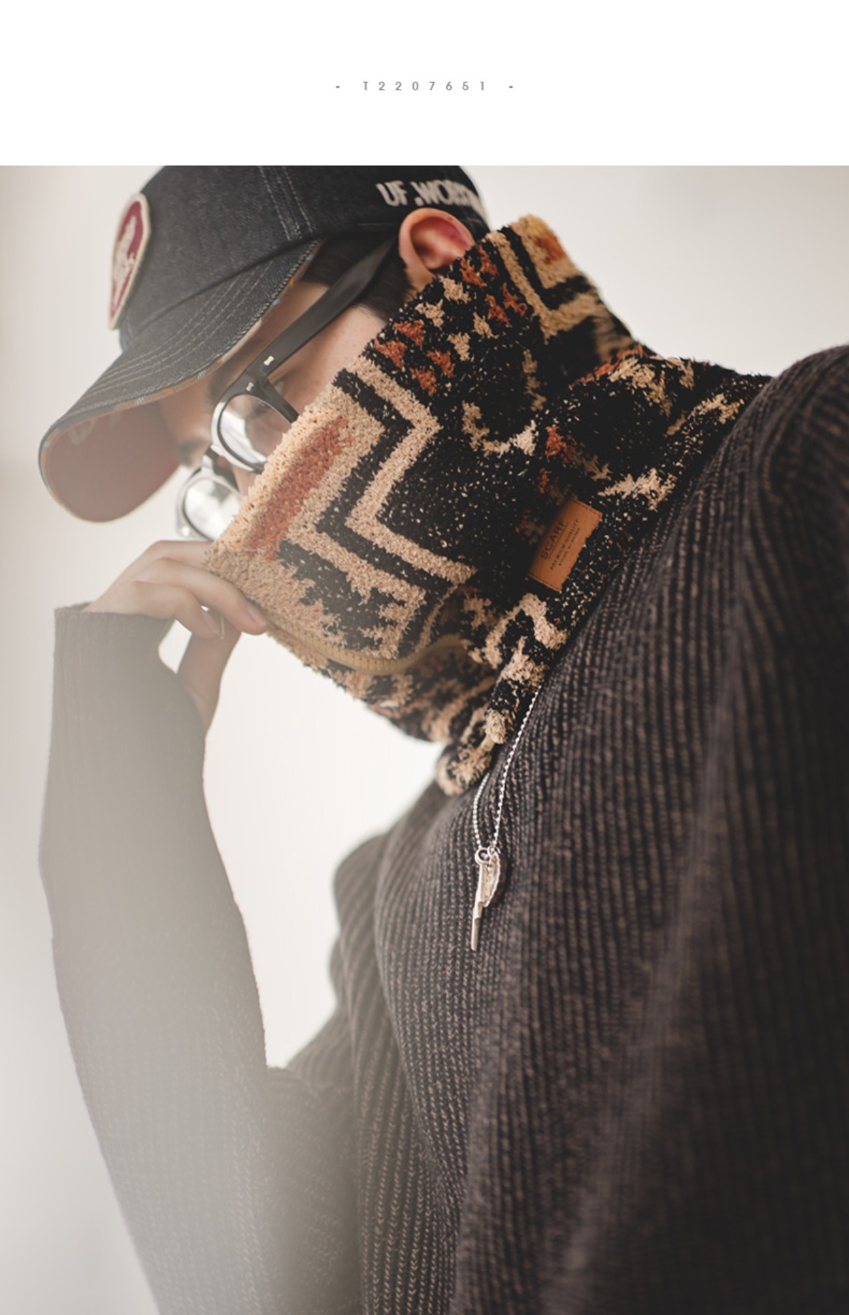 工装优选 复古印第安纳瓦霍半边绒围脖保暖户外拉链脖套围巾男冬