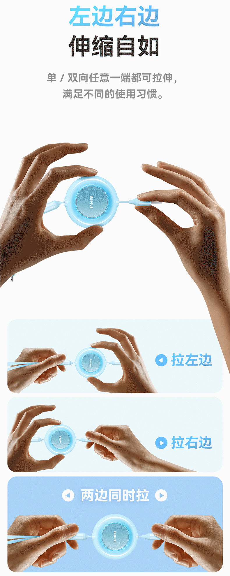 倍思 明镜系列2 随意拉伸一拖三快充数据线USB to M+L+C 3.5A 1.1m