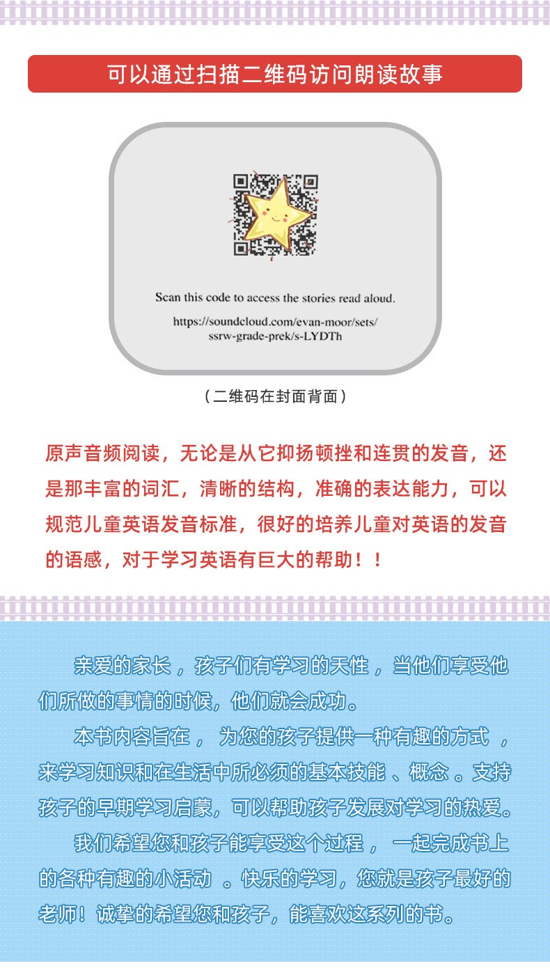 Evan-Moor是美国加州非常知名的教材出版社,自1979年以来,便一直致力于提供教育者实用、创意及吸引人的幼儿教育产品,支援与丰富教学课程。Evan Moor图书由教育专家开发,他们一直在持续研究如何帮助孩子们掌握概念。我们努力寻找与学习技能相关的主题,创造能够激发好奇心的练习。在这些练习中,很多可以扩展到动手活动。如果您的孩子在学习中遇到问题或是需要挑战,Evan Moor教学练习册提供各学科所需技能的丰富练习。我们的图书加强在概念上的基本技能练习并鼓励您的孩子思考。您可以信赖Evan Moor的图书,因为这些图书都基于新的Common Core标准并经过严格的教育实践检验。在向新标准和新技术转变的过程中,Evan Moor一直是教师们可靠和可信赖的资源。