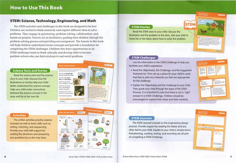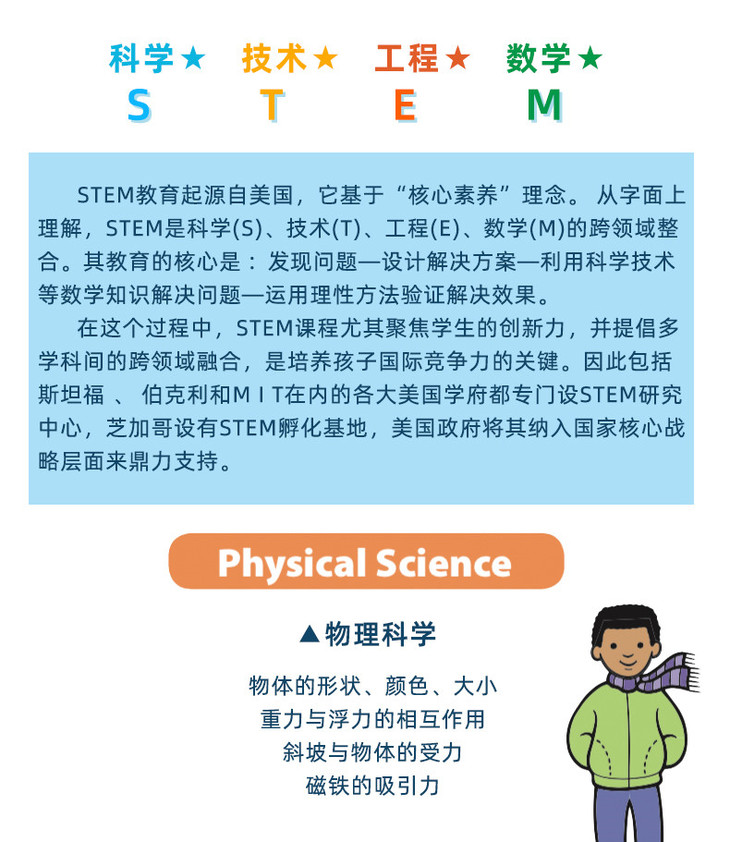 包含了三大STEM主题:物理、生命和地球。书里的每一个章节由5部分内容组成: