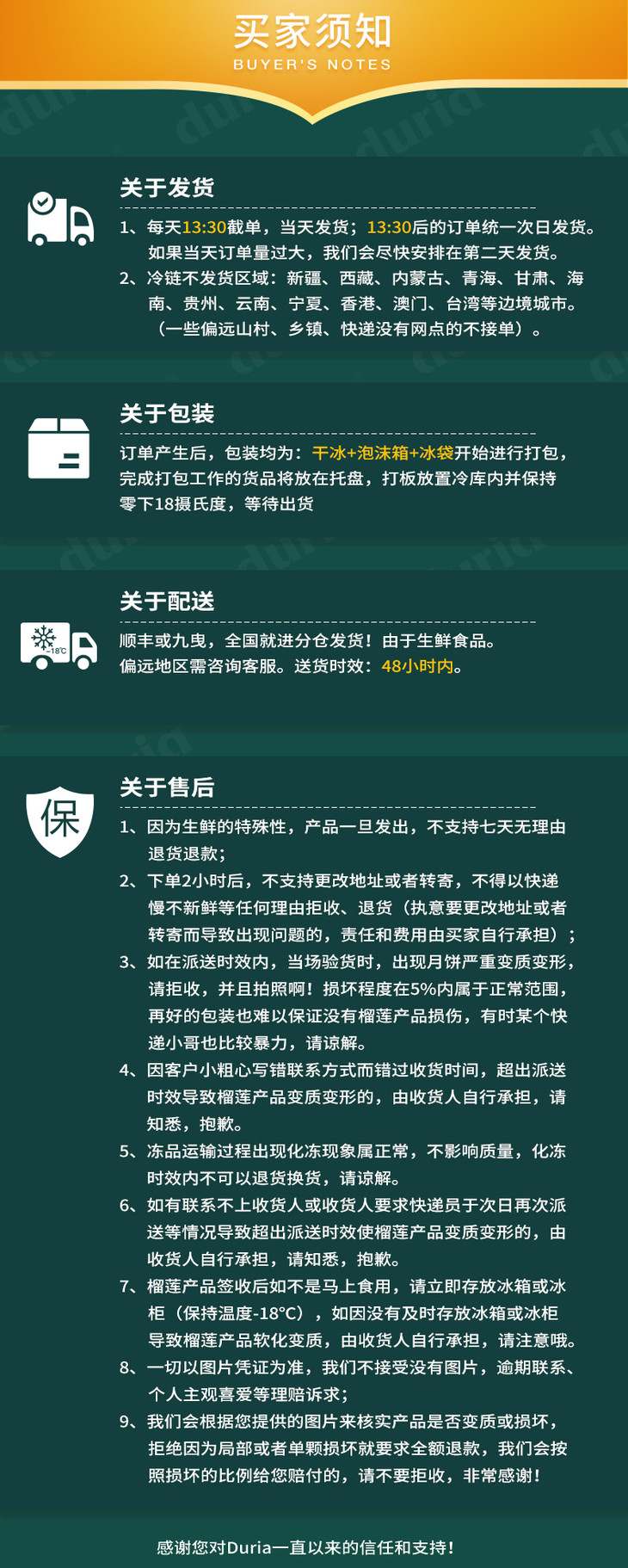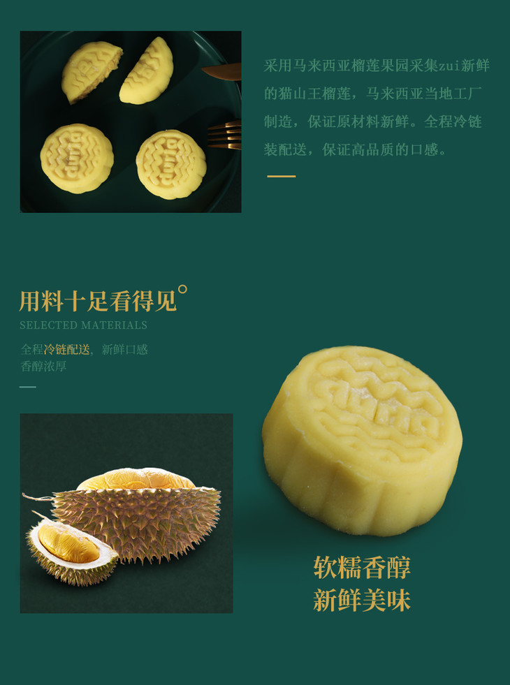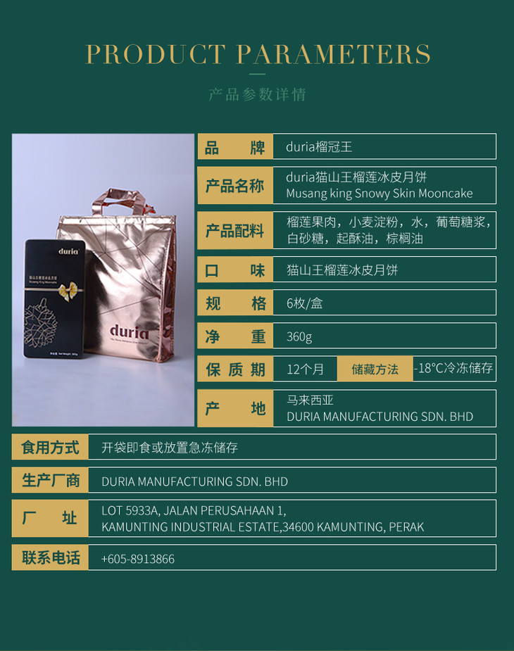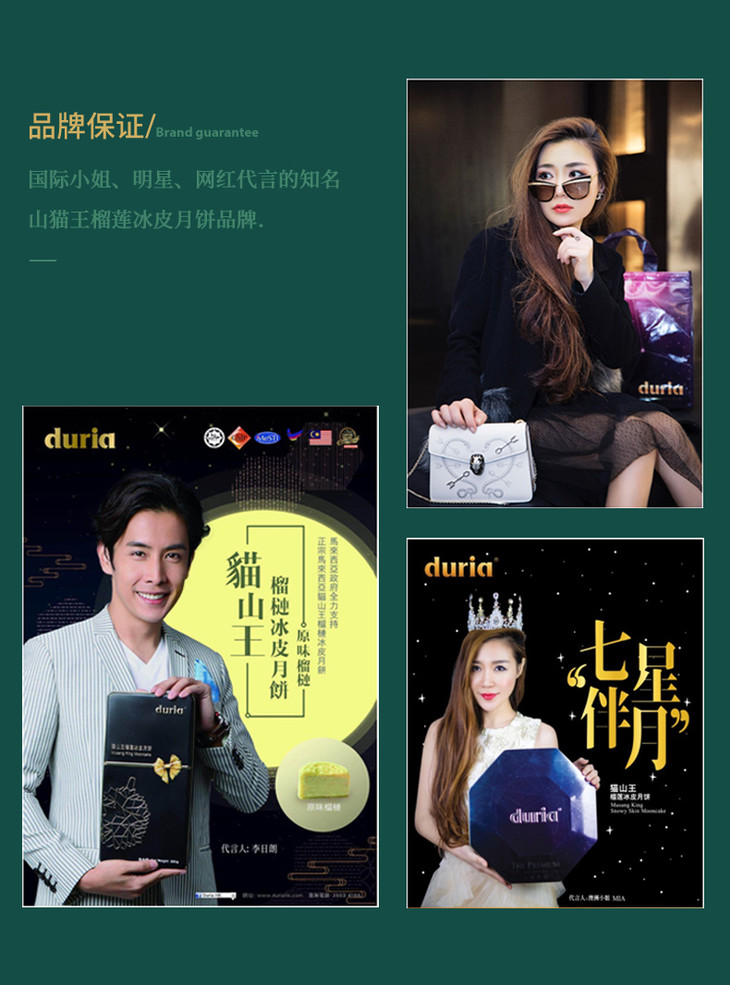 Duria猫山王榴莲冰皮月饼(原味)60g*6/盒