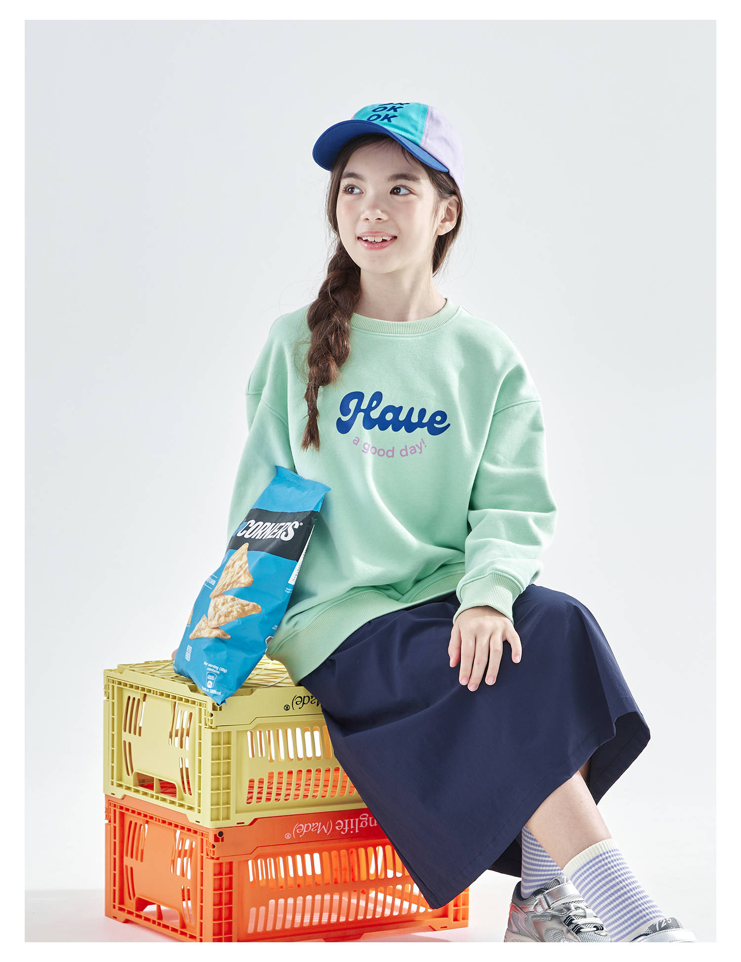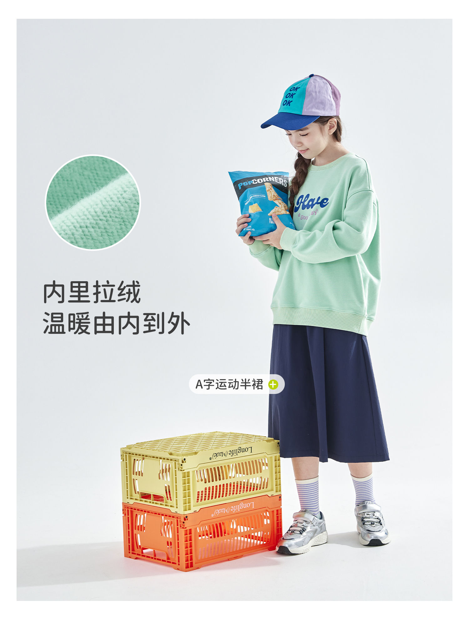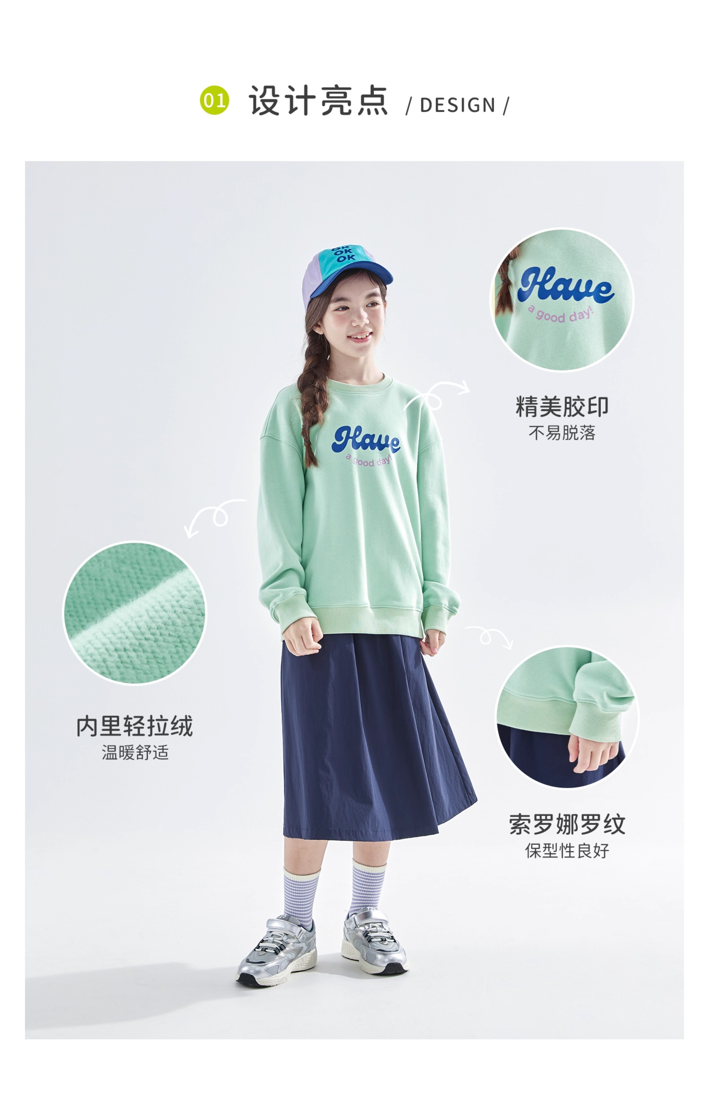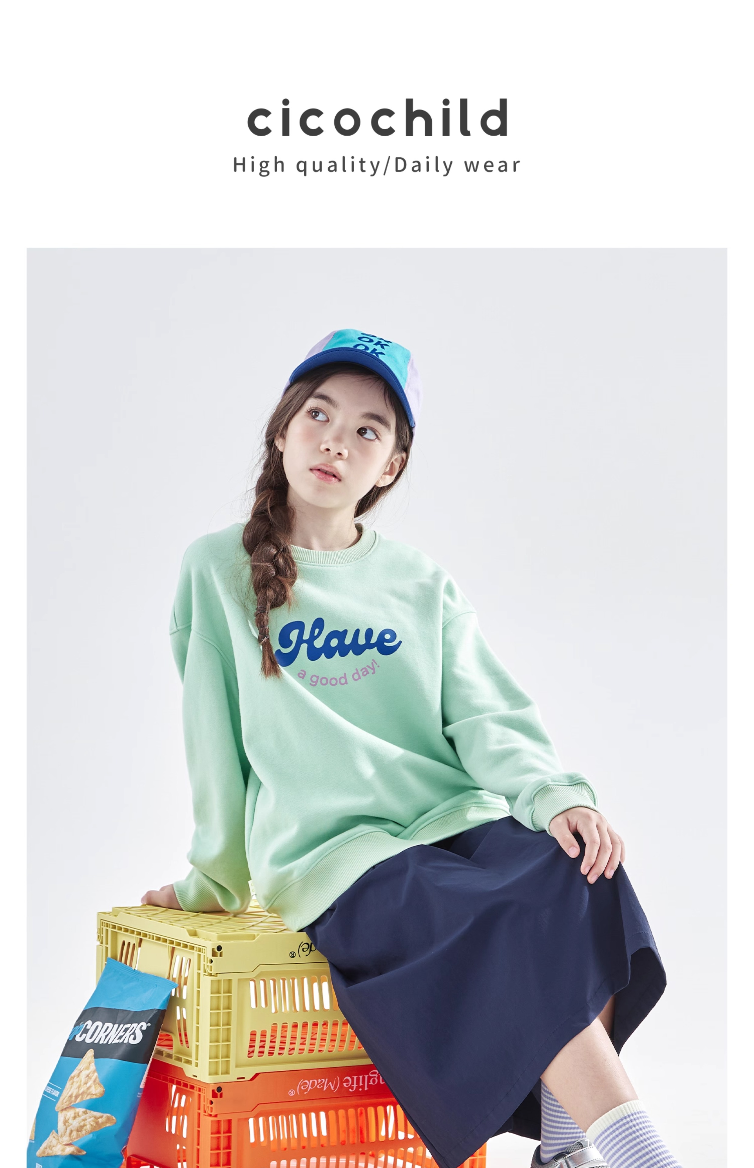 cicochild 2025年秋季新款女童圆领卫衣内里拉绒保暖印花百搭上衣