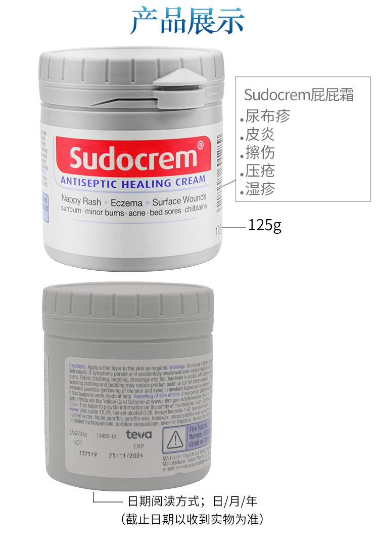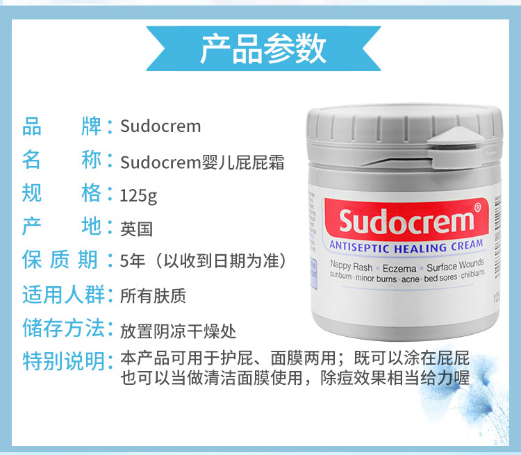 【香港直邮】英国Sudocrem新生婴儿屁屁霜宝宝红屁屁护臀膏屁屁乐清洁面膜125g