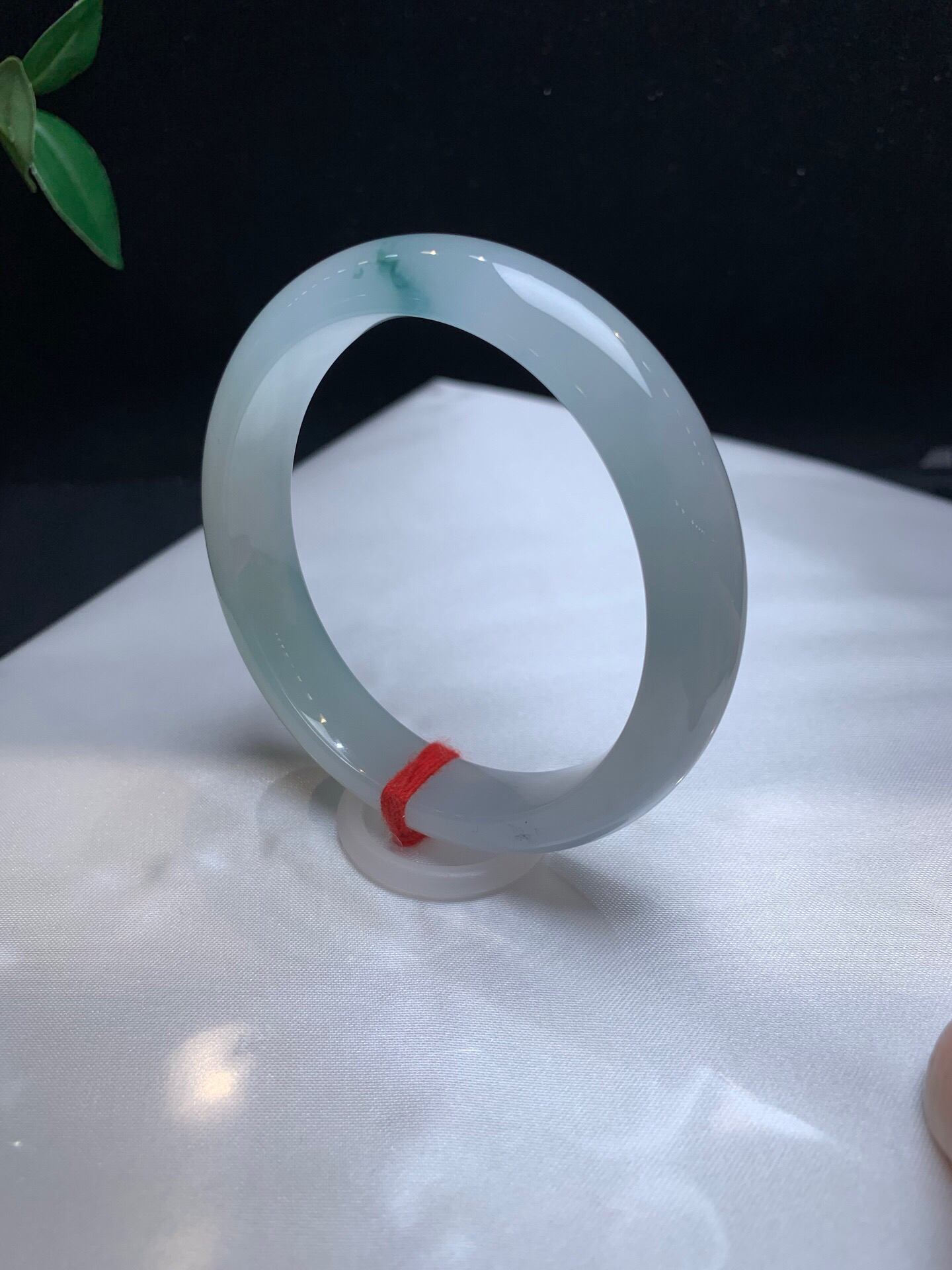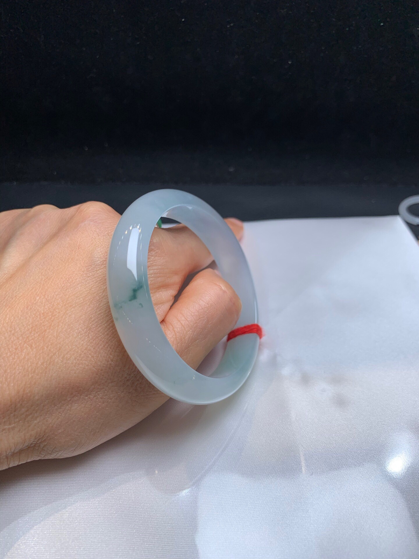 612520,55冰飘花手镯,12.4-7.7mm,冰底 飘了一抹淡雅的蓝花,秀气灵动,完美,超值价💰80500 #优石客珠宝#香玉荟萃