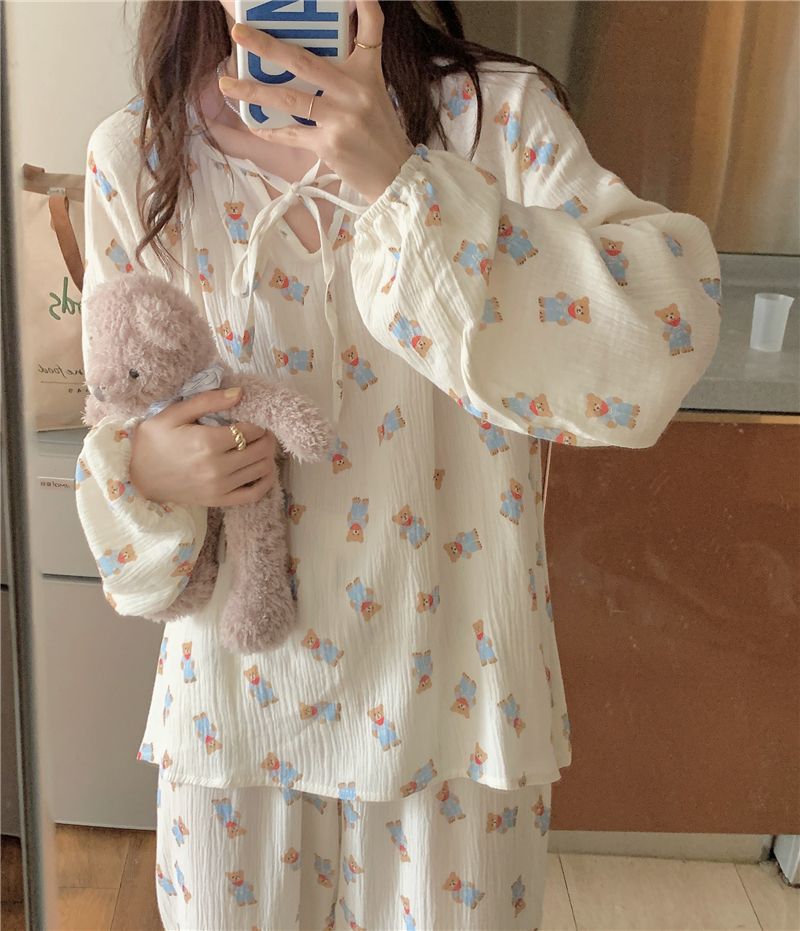 【秋季新款❗️长袖长裤睡衣】小熊蝴蝶结女冬天新款家居服套装女 商品图1