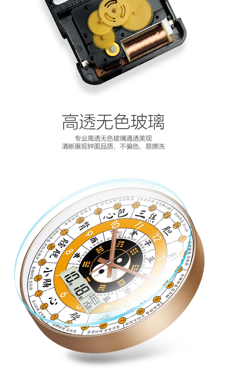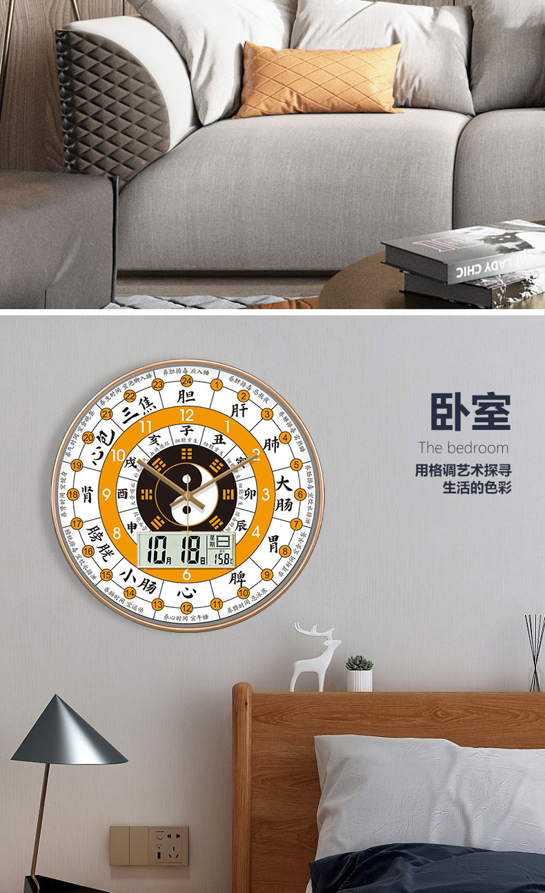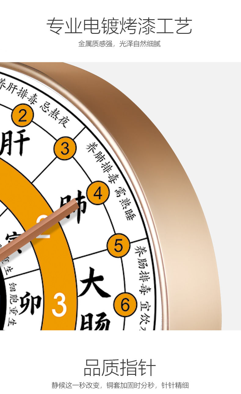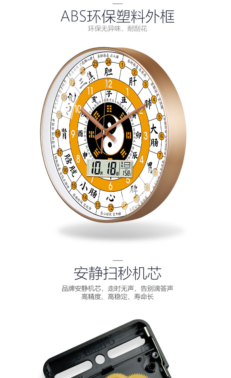 [精选]子午流注钟表 24小时养生时钟 中医十二时辰 经络八卦静音时钟 商品图4