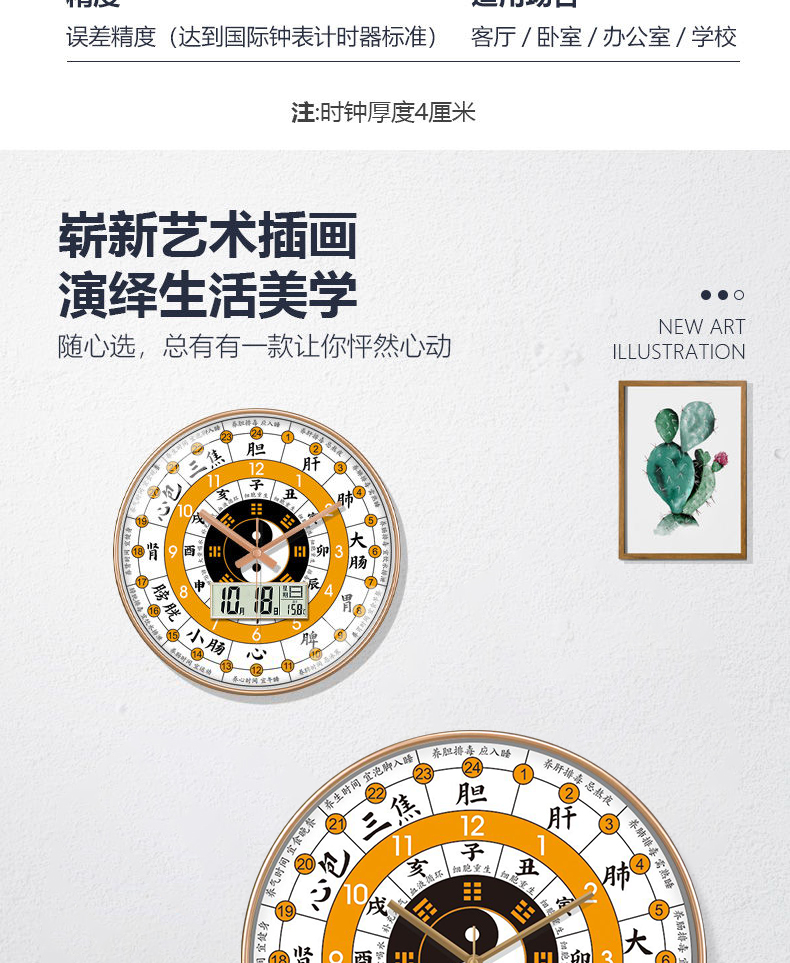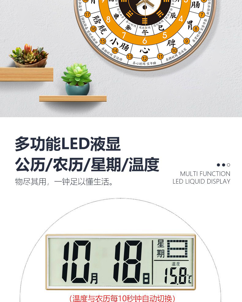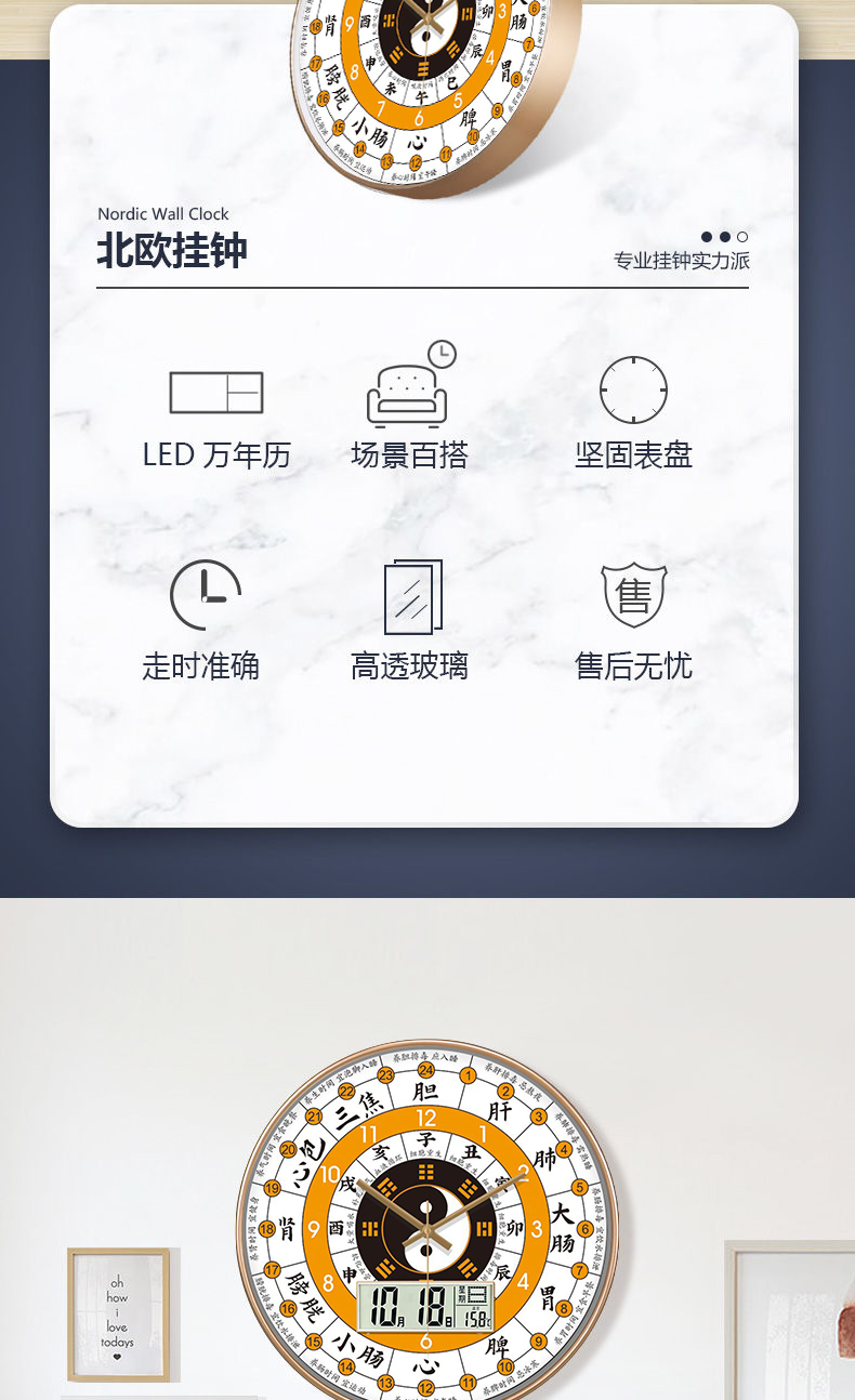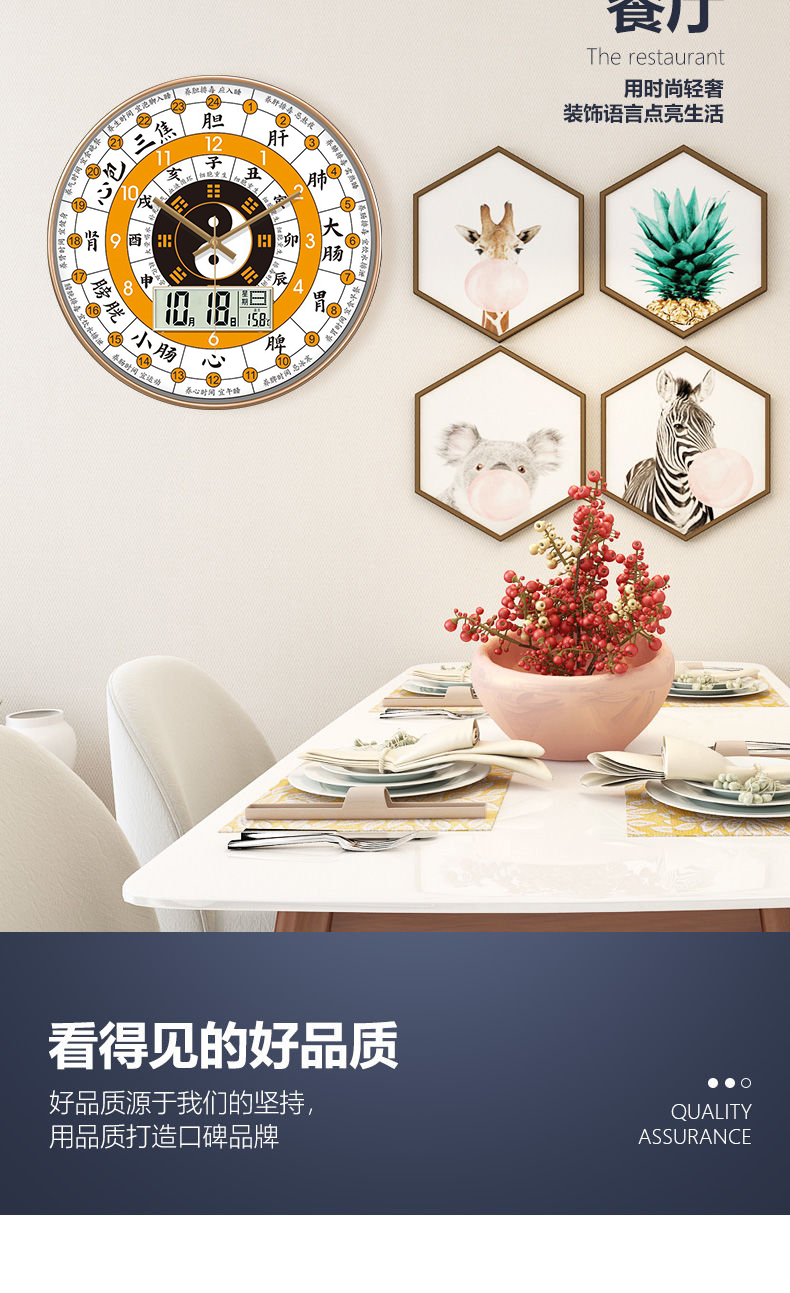[精选]子午流注钟表 24小时养生时钟 中医十二时辰 经络八卦静音时钟 商品图4
