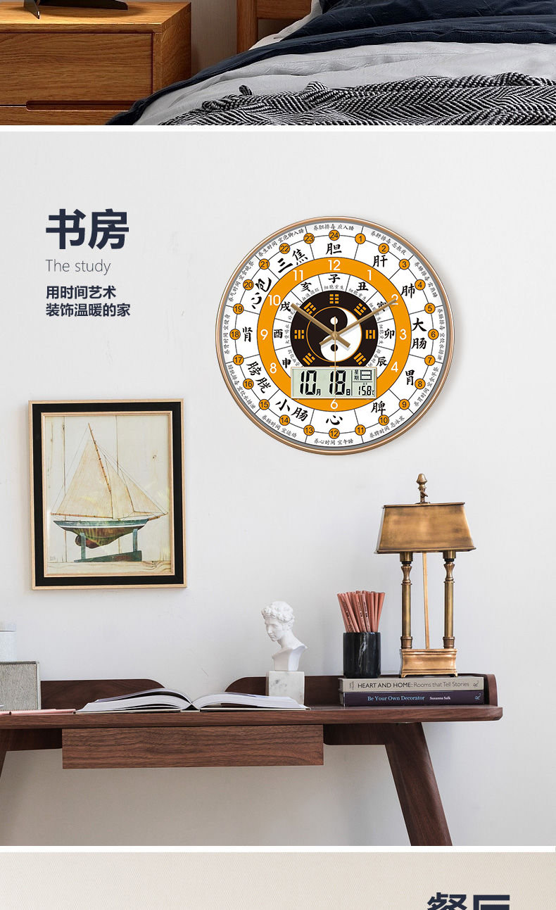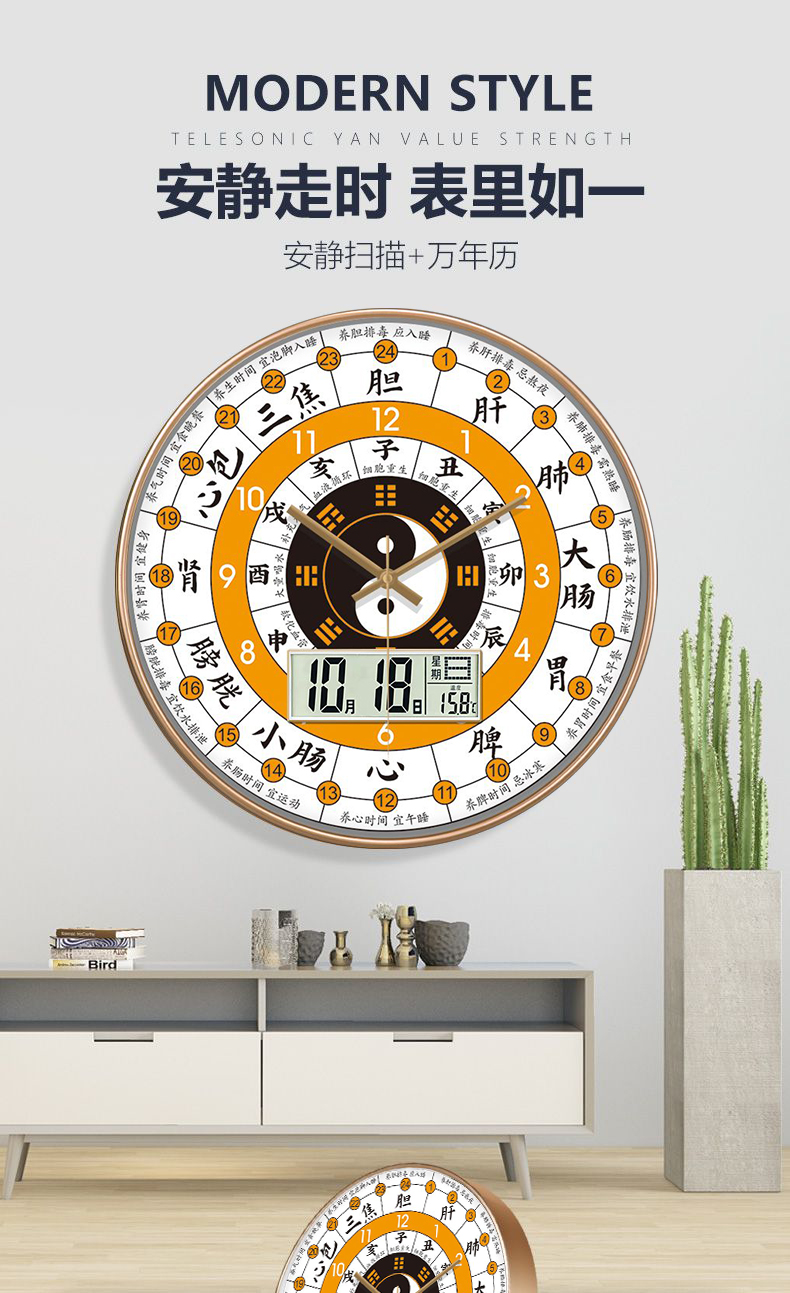 [精选]子午流注钟表 24小时养生时钟 中医十二时辰 经络八卦静音时钟 商品图0