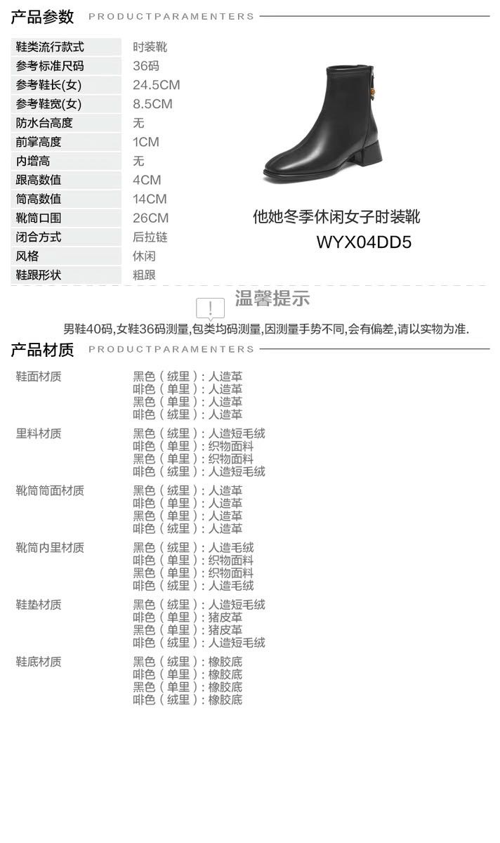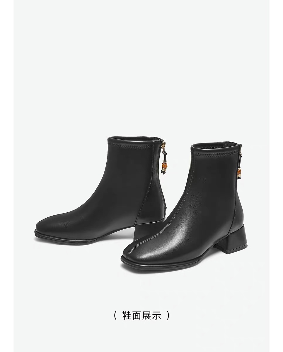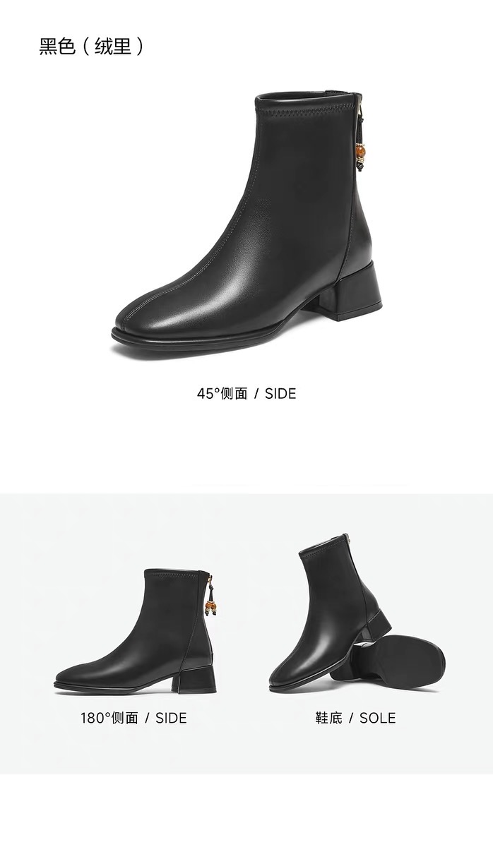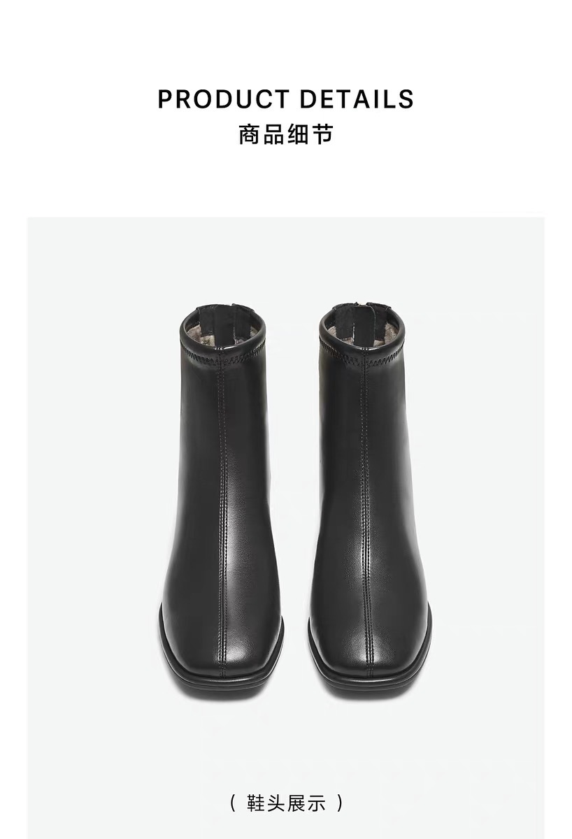【云粉节】BF楼TATA他她靴子女秋冬季新款百搭黑色短靴粗跟真皮瘦瘦鞋子WYX04DD5吊牌价999