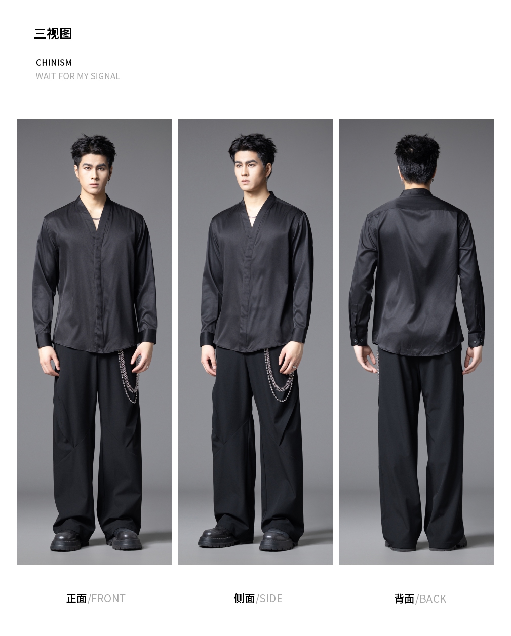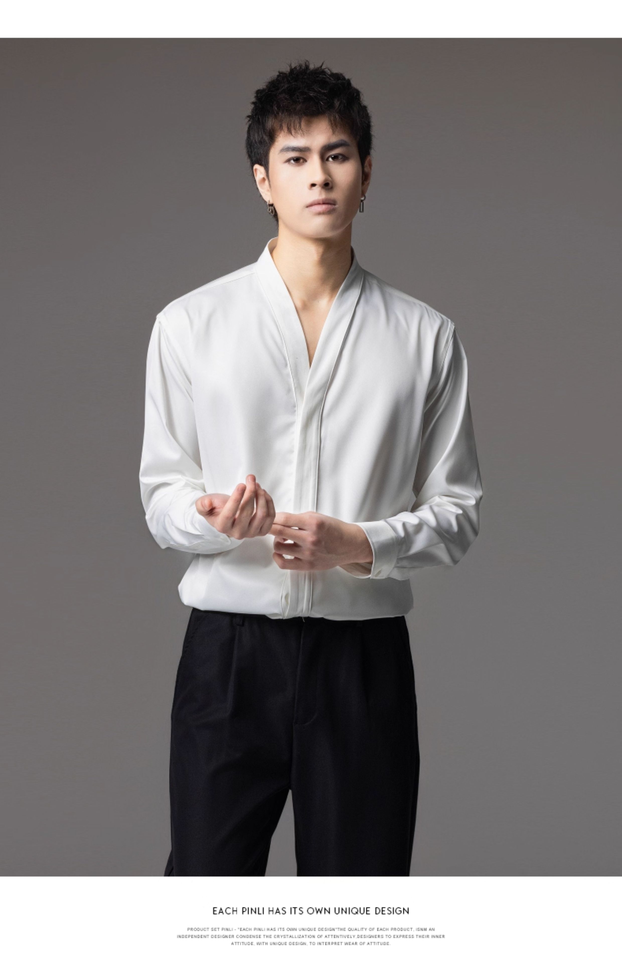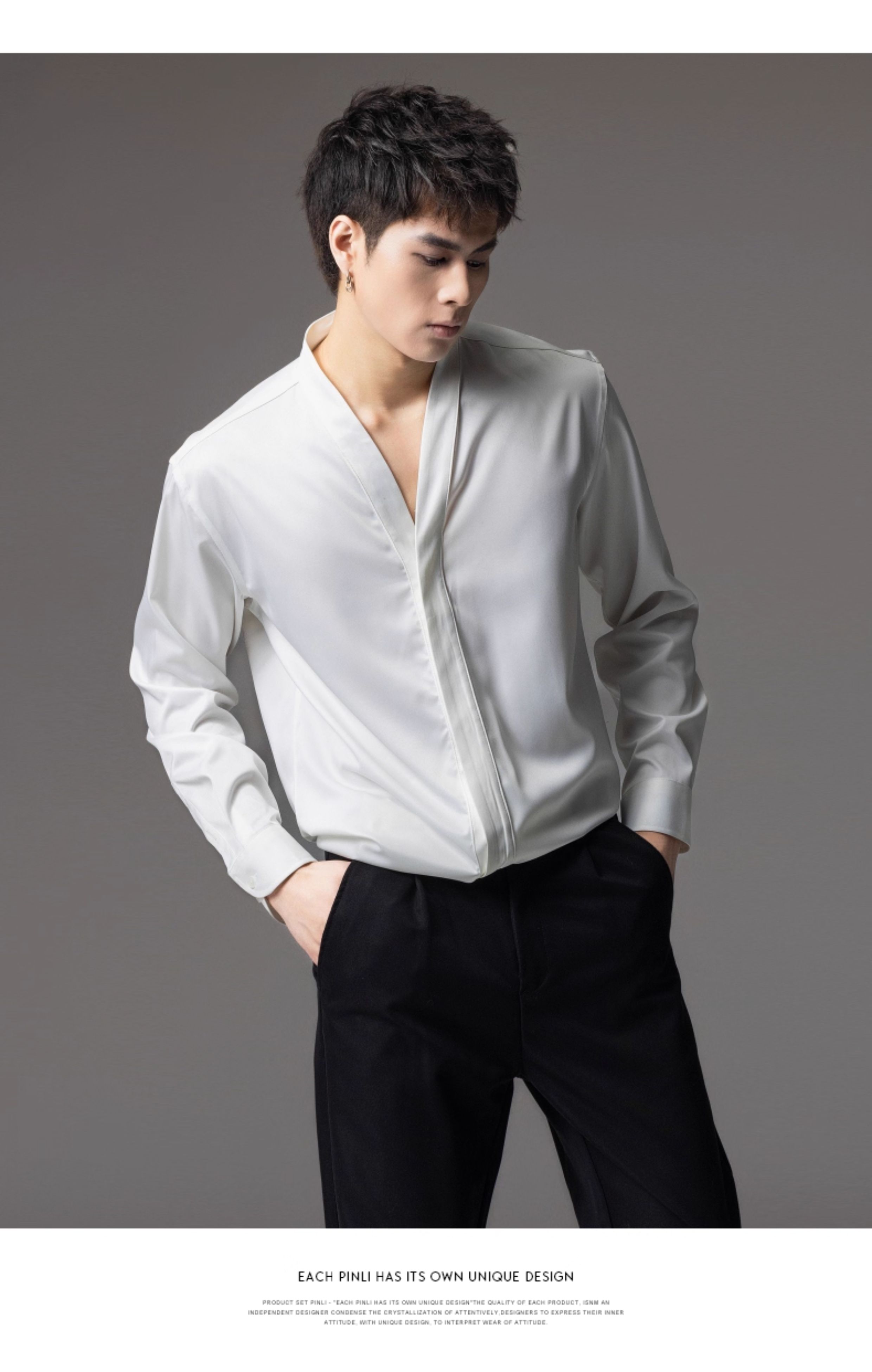 PINLI品立2025秋季新款V领纯色休闲长袖衬衫雅痞风垂感衬衣男上衣GD253113045