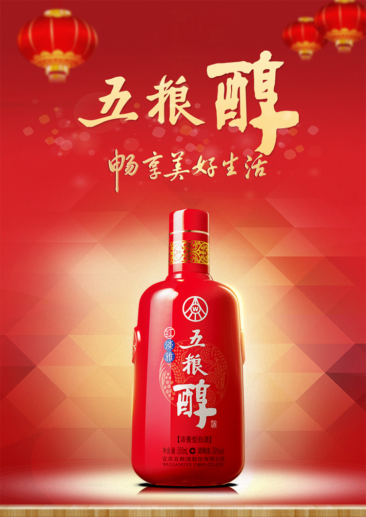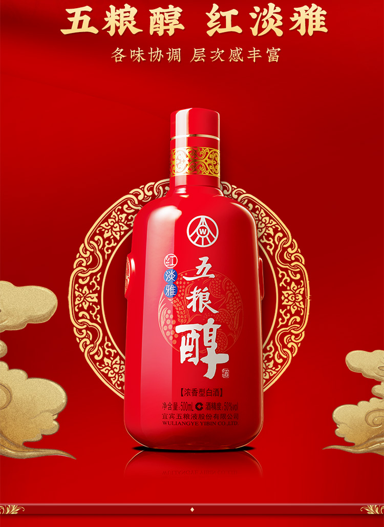 五粮醇红淡雅金装仿陶瓶50度500mL*6瓶整箱浓香白酒宴请