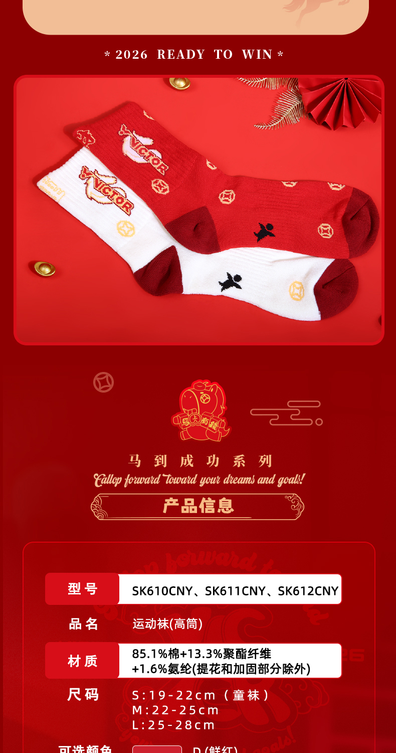VICTOR威克多马到成功马年限定羽毛球袜SK610CNY SK611CNY运动袜高筒