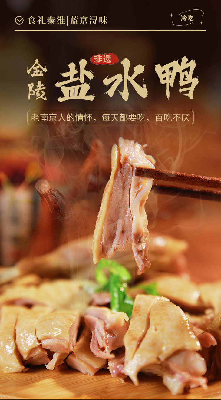 【非遗金陵盐水鸭】#冷吃菜# 咸香可口,肉质鲜嫩不肥腻、无鸭腥味、精选优质谷鸭,千年古法老卤秘制 ,连骨头都入味了~
