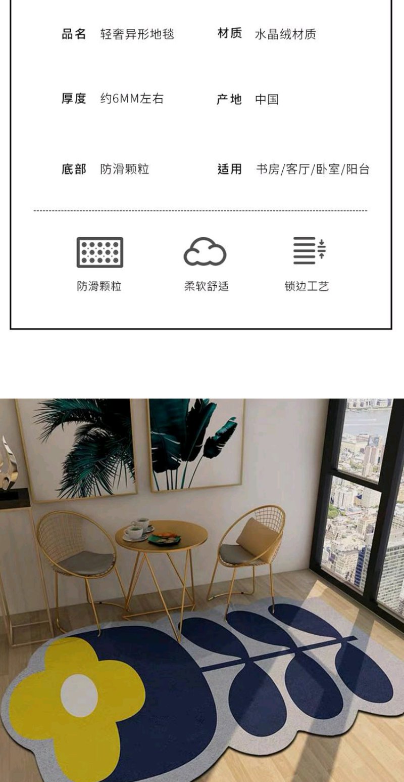 简约ins地毯客厅北欧风轻奢地垫异形创意卧室床边毯不规则可水洗