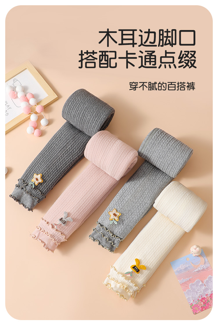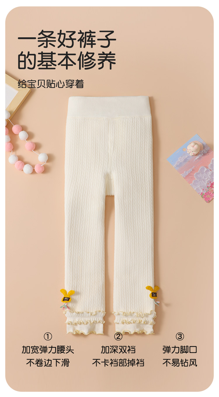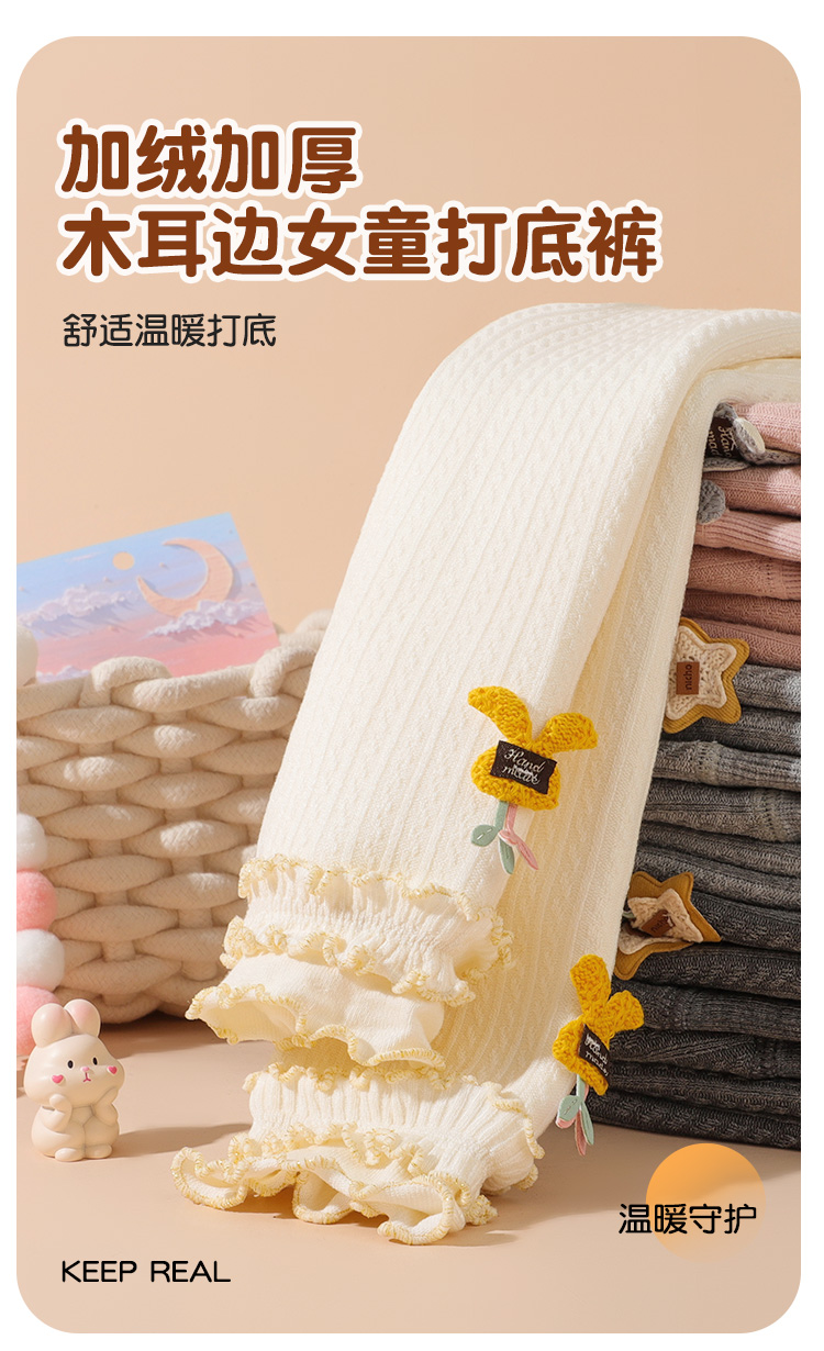 【一体绒加厚】秋冬甜美木耳边女童宝宝可外穿打底裤女时尚百搭木耳边儿童打底裤