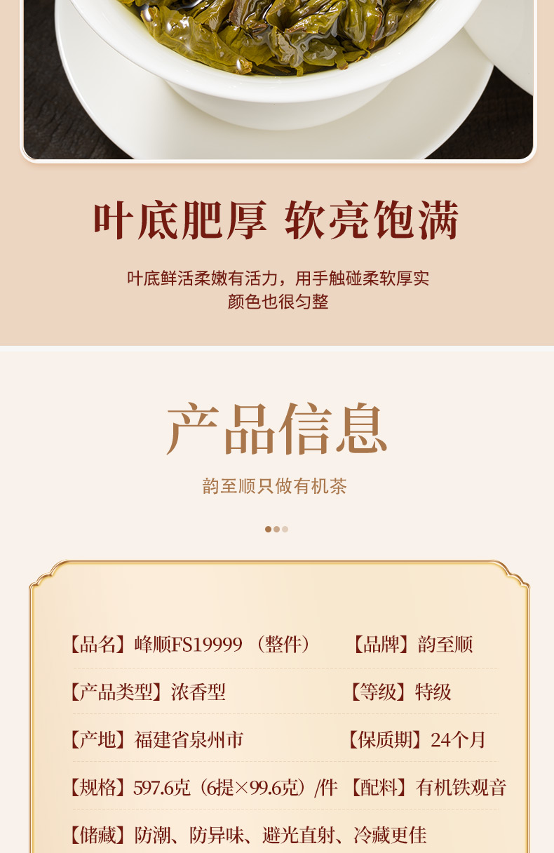 【峰顺 FS19999整件】批发 韵至顺 有机乌龙茶 有机铁观音 峰顺 597.6克/件( 99.6克/盒*6盒)送手提袋6个