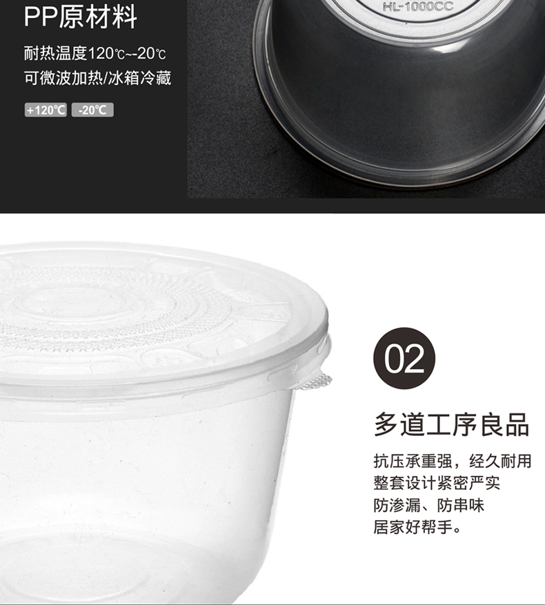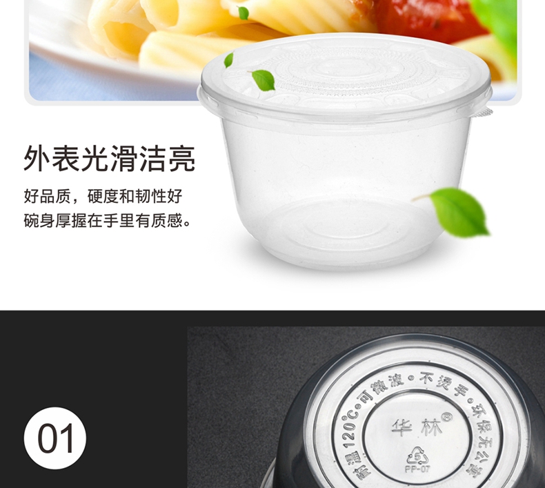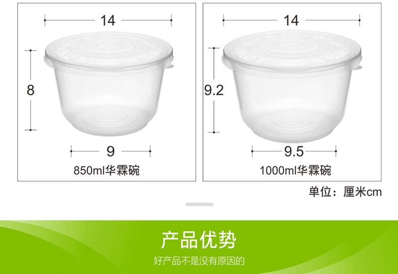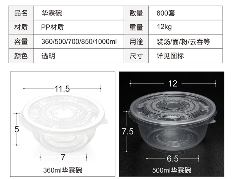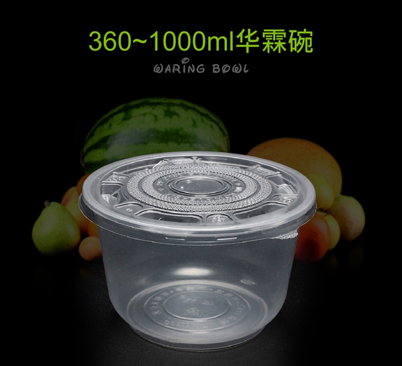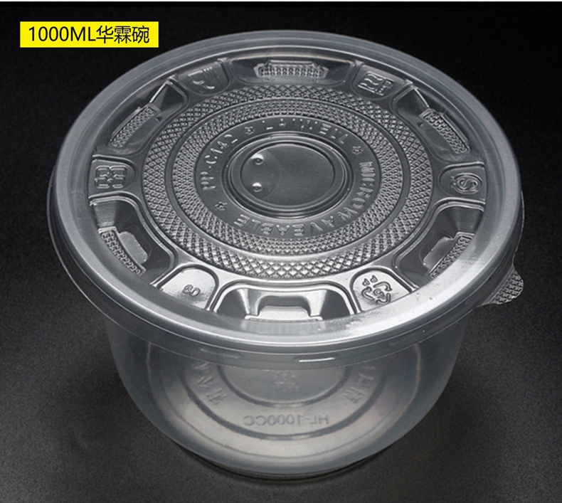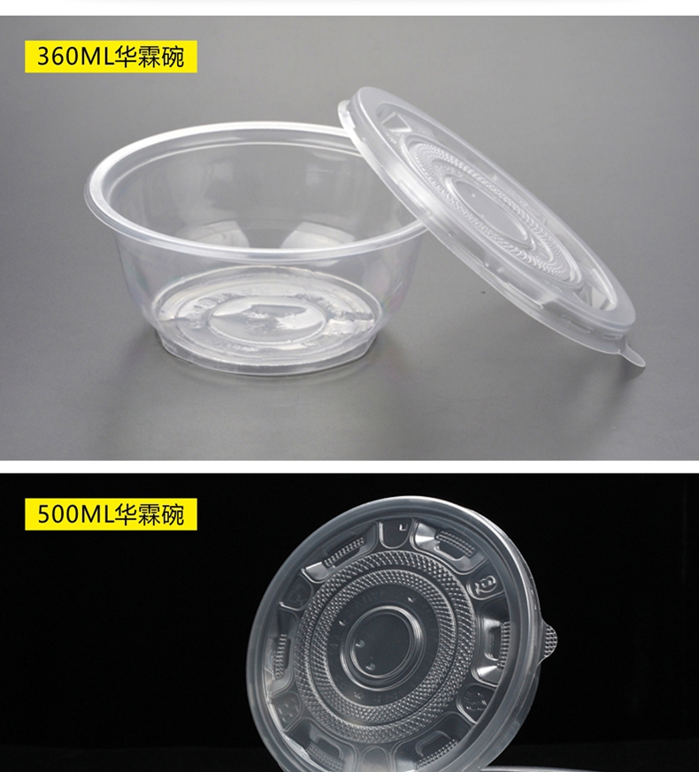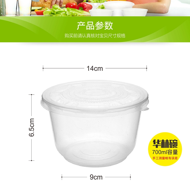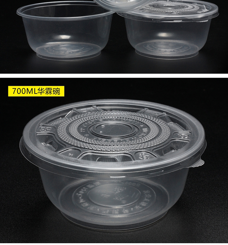 喇叭花360/700/850/1000ml一次性塑料碗圆形打包盒外卖餐盒600套带盖