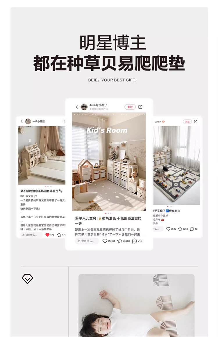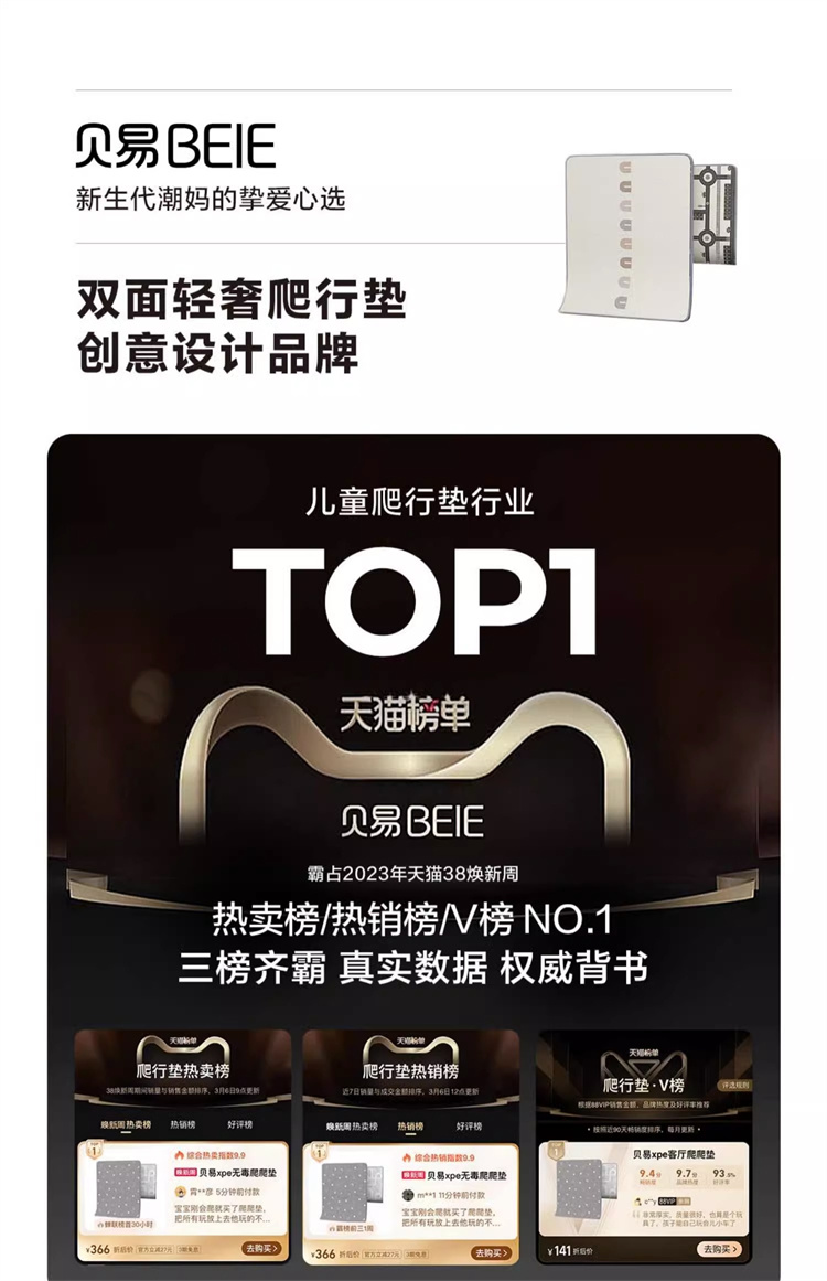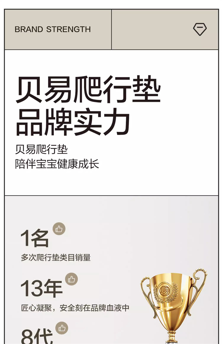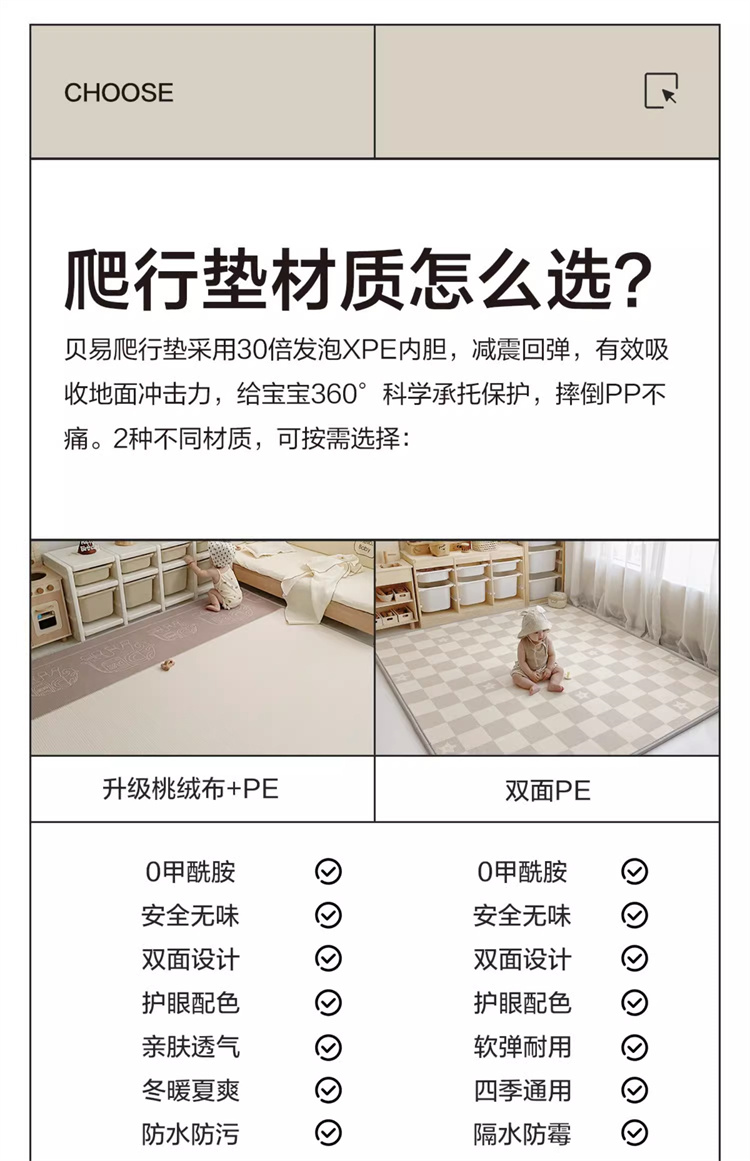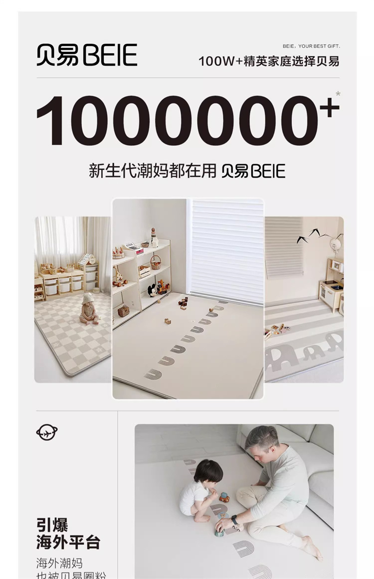 贝易BeiE爬爬垫XPE整体垫加厚婴儿爬爬垫儿童泡沫地点游戏垫新生儿爬爬垫