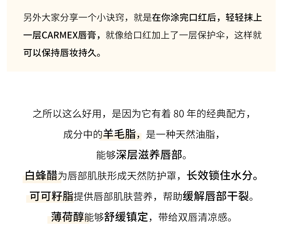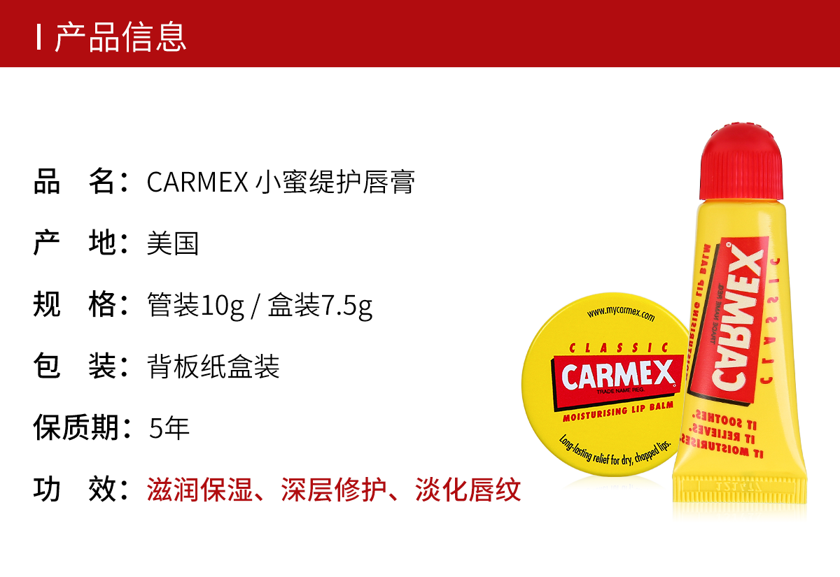 【一般贸易】美国 Carmex 小蜜缇润唇膏减淡唇纹7.5g(盒装)修复唇纹10g(管装)