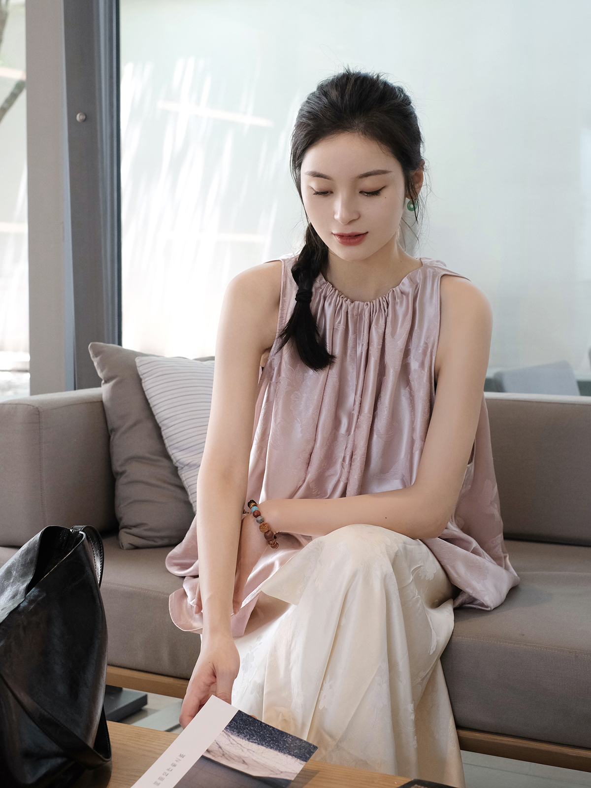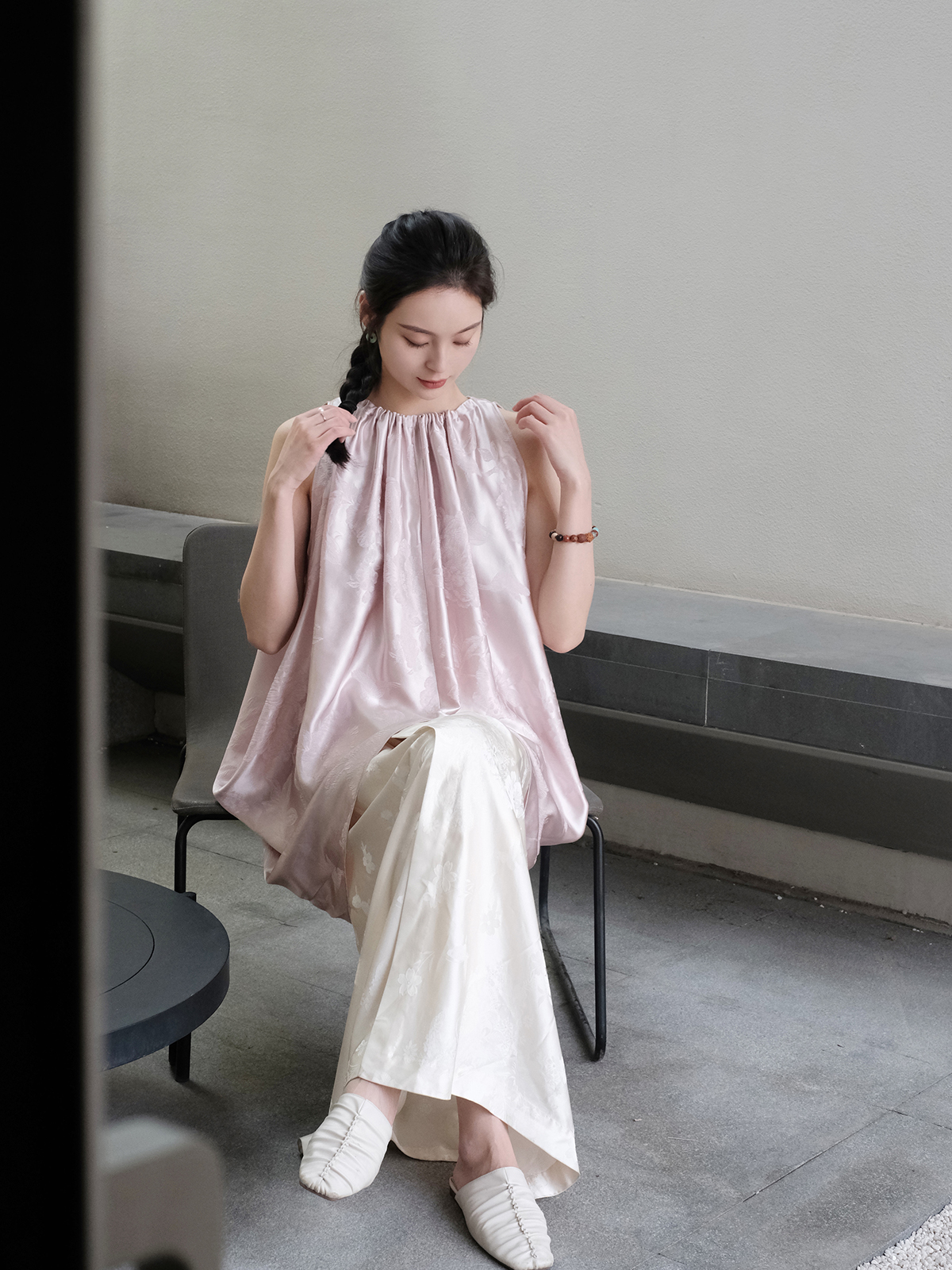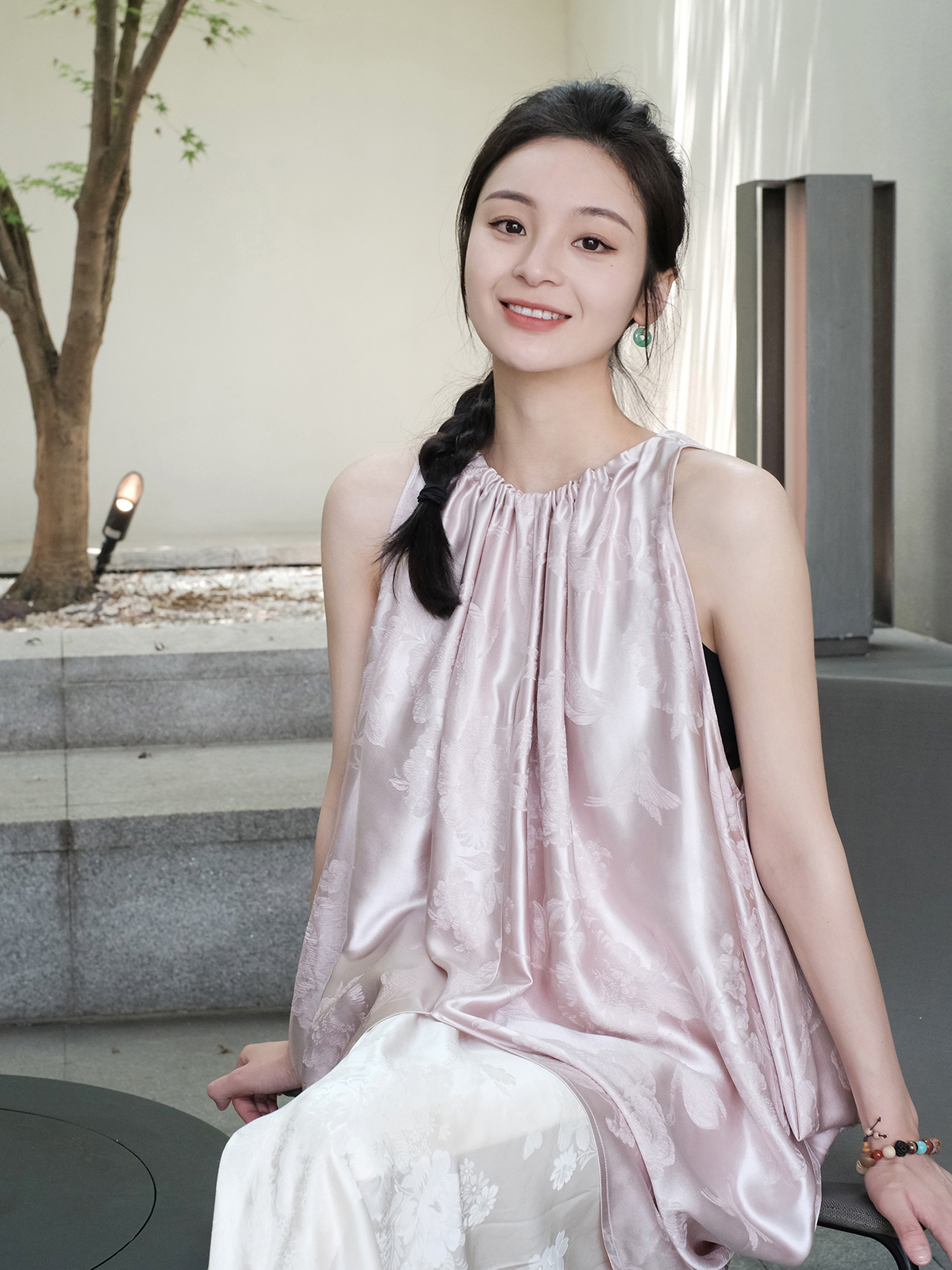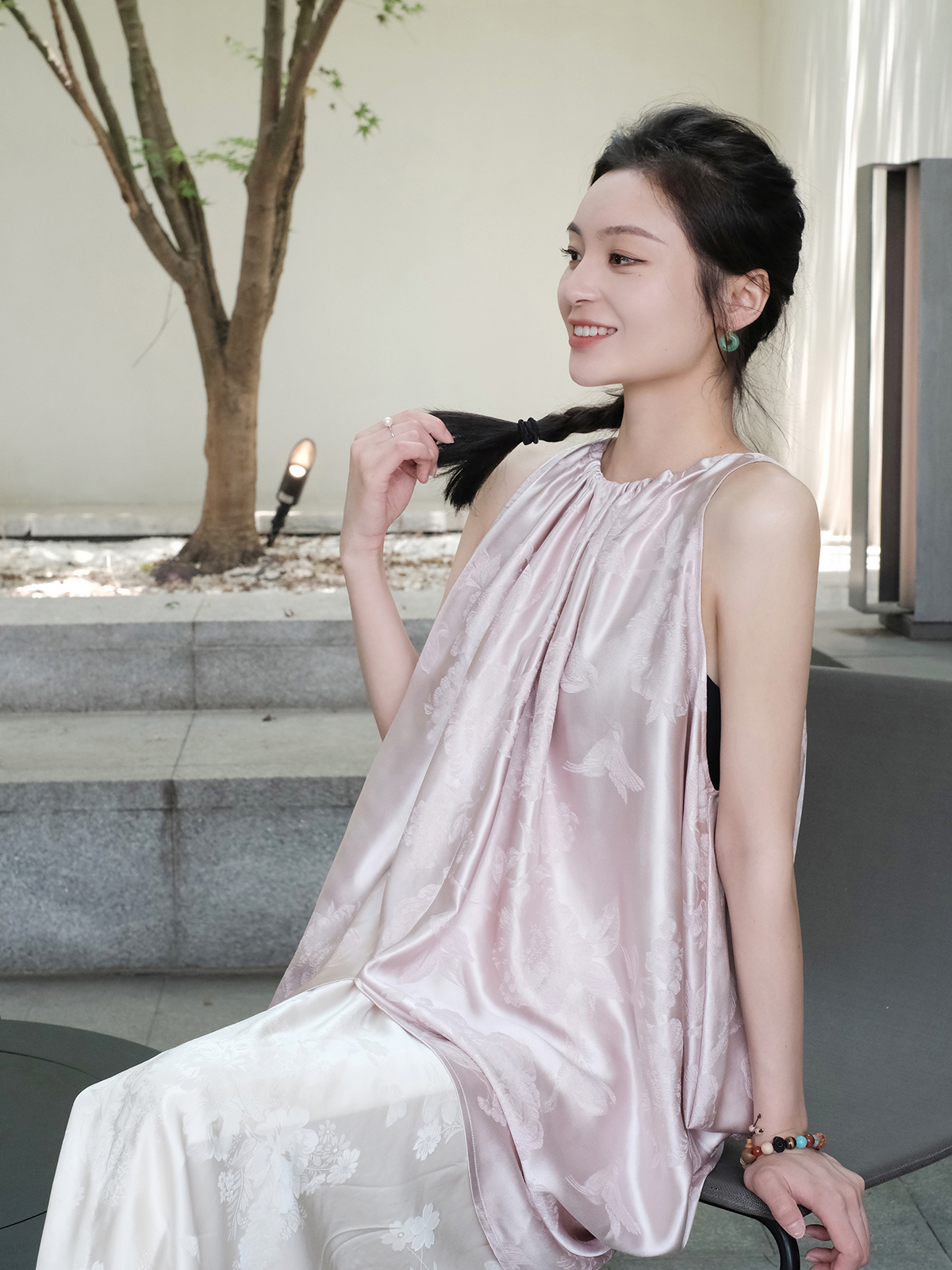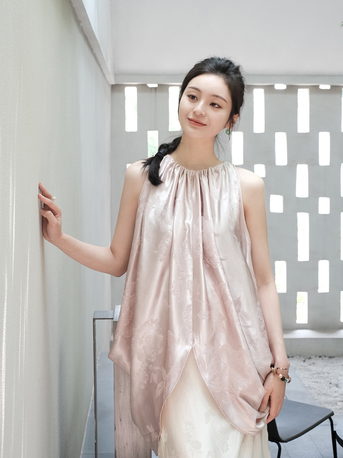 盛唐牡丹| 珍珠白真丝竹子纹偏襟上衣