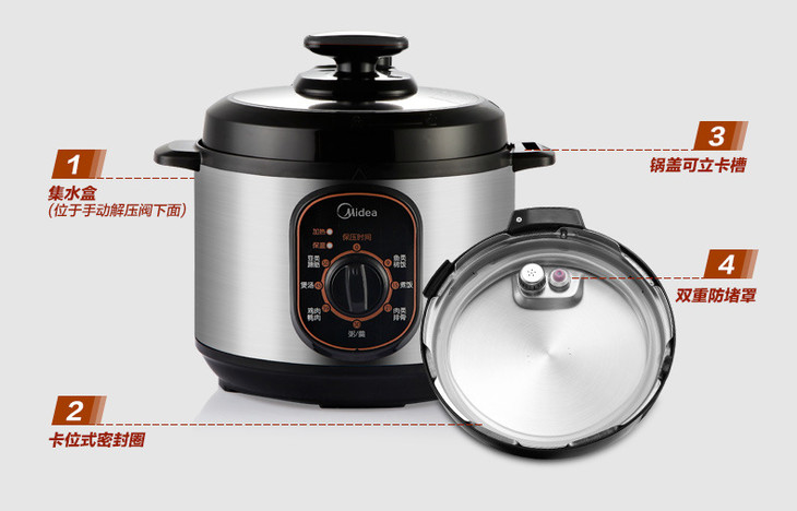 【高压锅】*Midea/美的 MY-12CH402A电压力锅4L升家用迷你高压饭煲3-4人