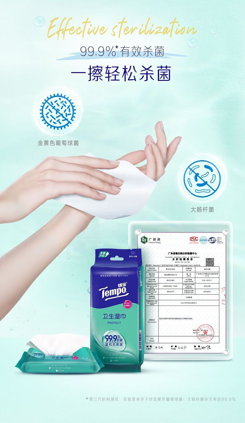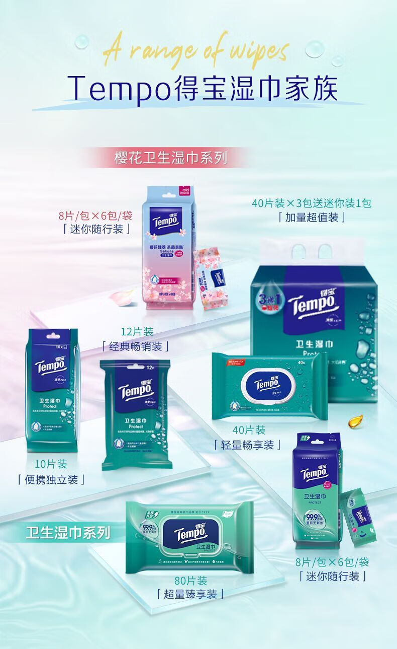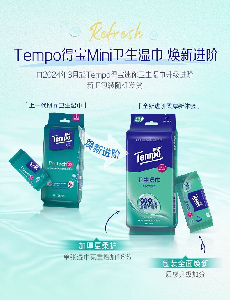 【积分兑换】得宝(Tempo)迷你湿巾8片/包*6包/提*5提便携清洁纸巾户外好物