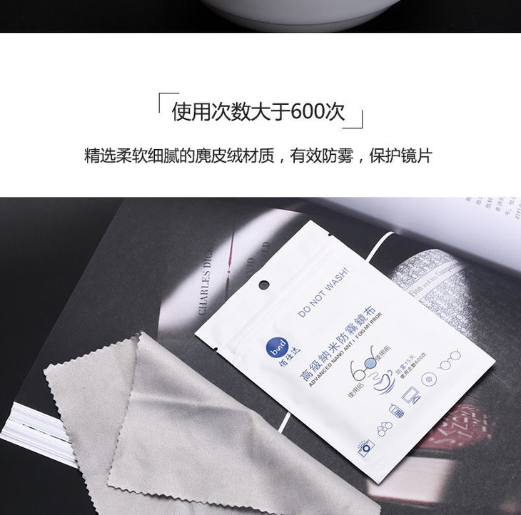 「2张装」眼镜防雾镜布纳米防雾眼镜布湿巾
