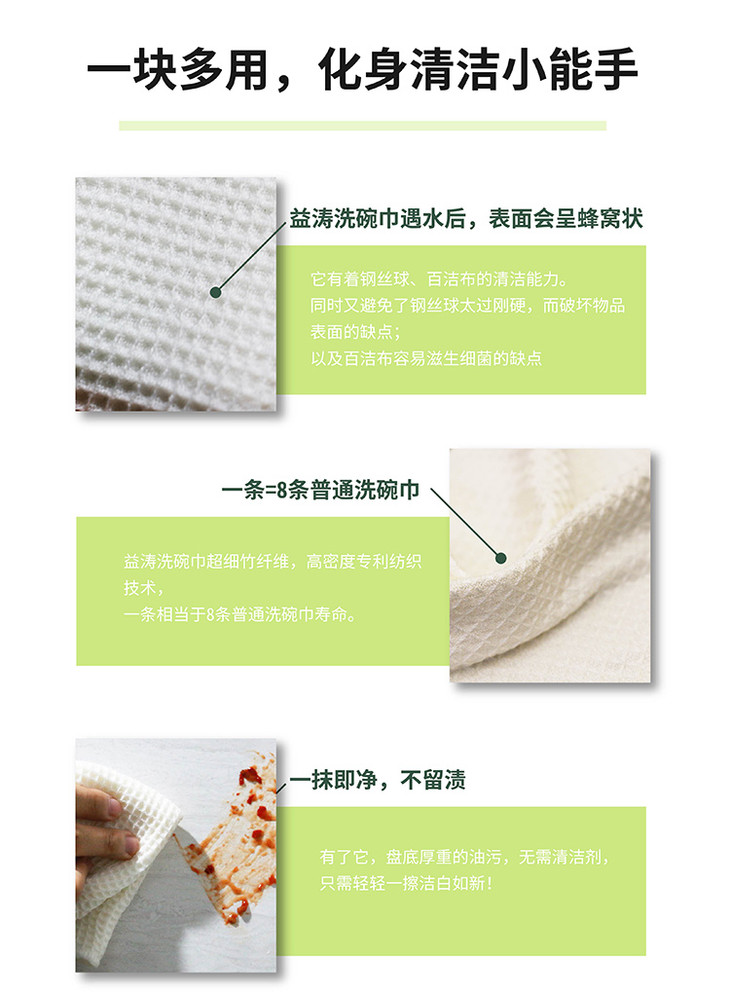 【告别洗涤剂】厨房去油利器!天然竹纤维快速去油污,1条=8条普通洗碗布