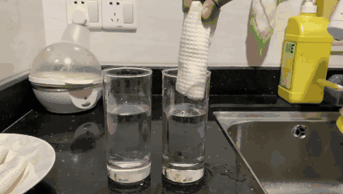 将这款洗碗巾和普通洗碗巾同时浸湿