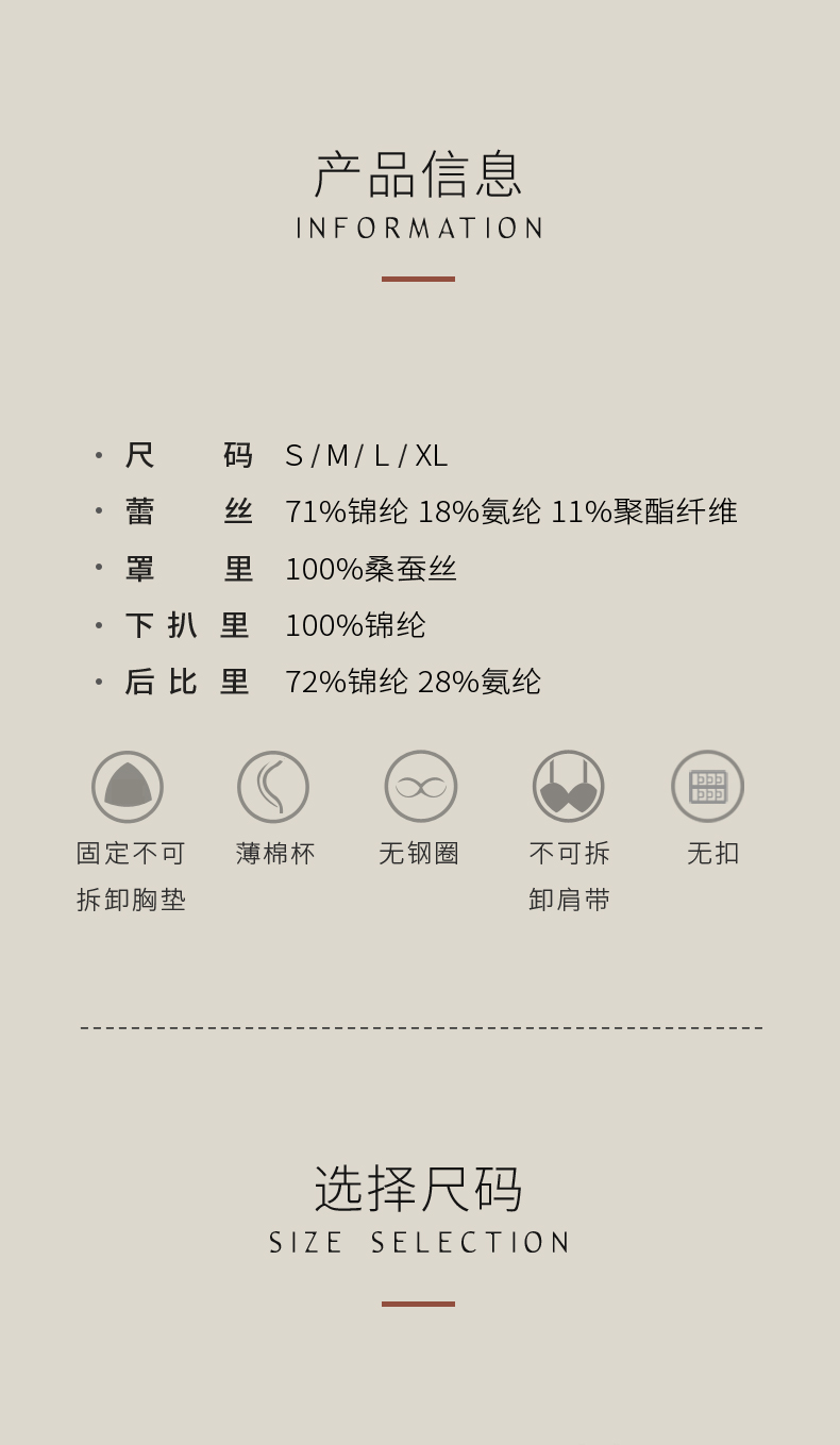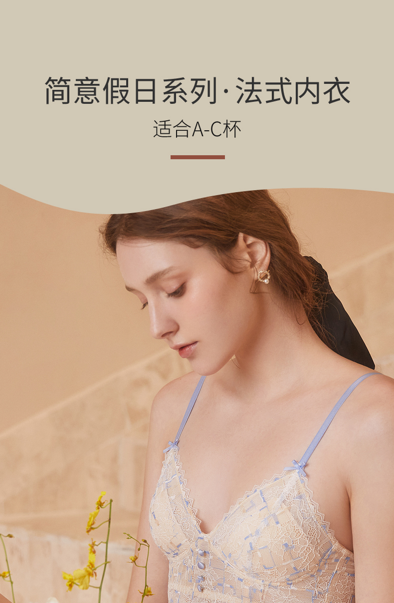 金三塔法式蕾丝印花文胸蝴蝶结撞色肩带抹胸真丝美肤内衣薄套装 NZFCB399
