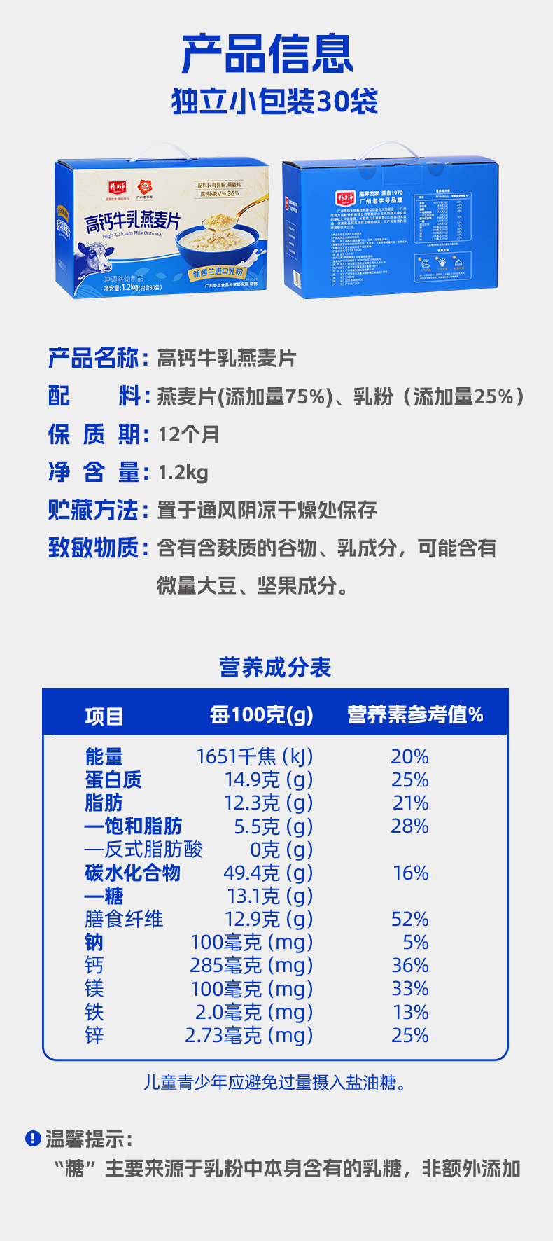 【精力沛】高钙牛乳燕麦片1.2kg